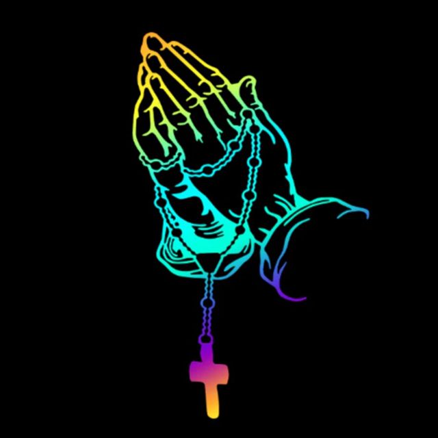 Adesivo para Carro Mãos em Oração com Rosário – Decalque Religioso Cristão em Vinil