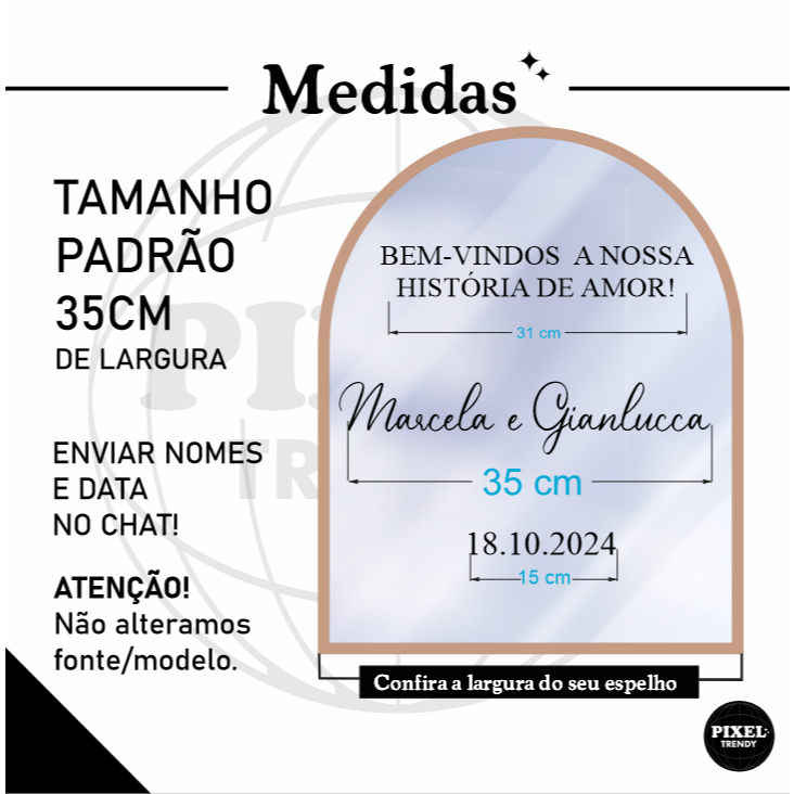 Adesivo para Espelho de Casamento Personalizado com Nomes Data Casal