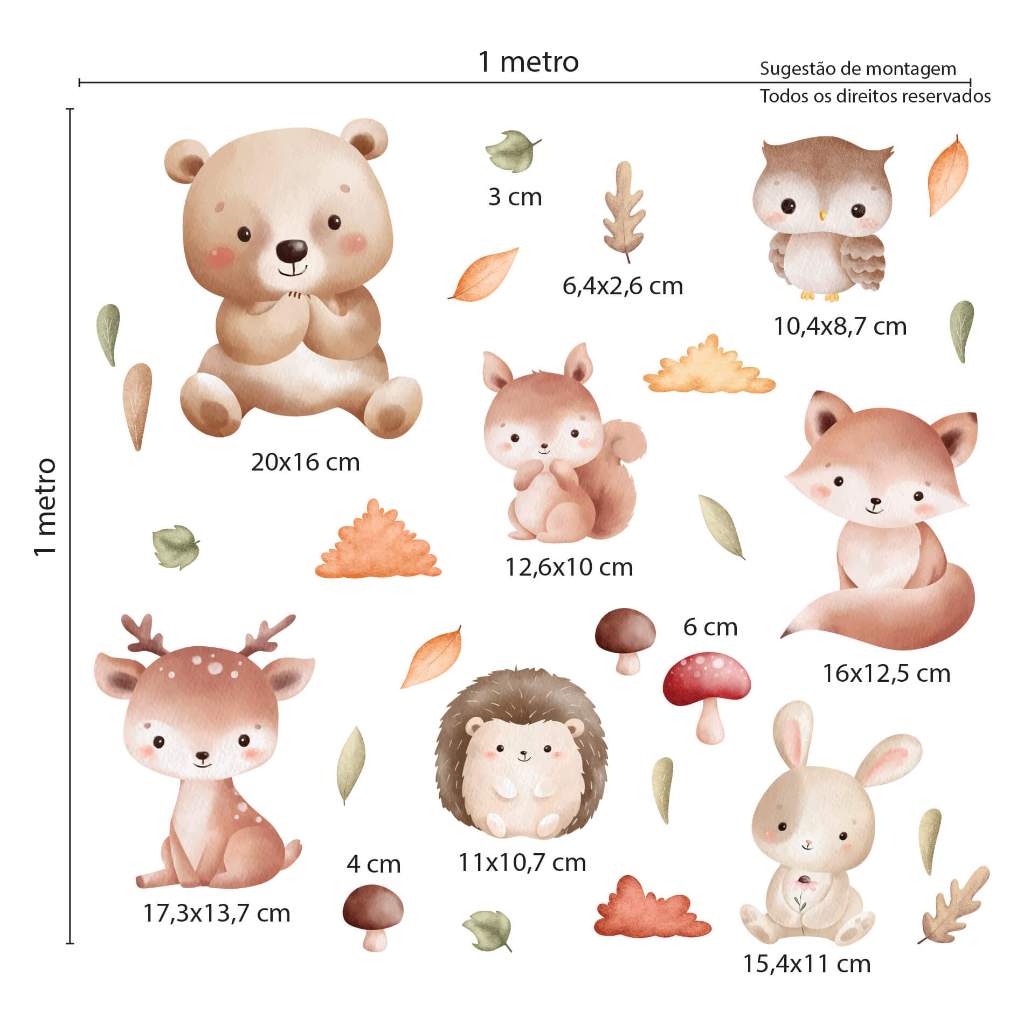Adesivo para Parede Animais da Floresta Bichinhos Silvestres