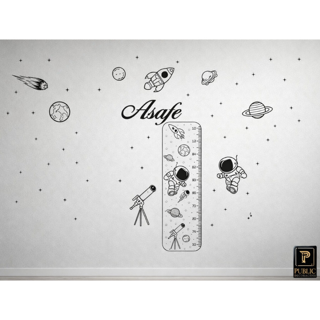 Adesivo de Parede Infantil – Universo Astronauta | Personalizado Transforme o quarto do seu filho em um verdadeiro espaço de imaginação! Universo traz astronautas, foguetes, planetas e estrelas para criar um ambiente lúdico e educativo. Perfeito para quartos infantis, brinquedotecas, escolas e espaços criativos! Opções de Tamanho: Opção 1: 150 cm (largura) x 94 cm (altura) Opção 2: 200 cm (largura) x 125 cm (altura) Opção 3: 250 cm (largura) x 157 cm (altura) Opção 4: 300 cm (largura) x 188 cm (altura) Observação: Essas medidas são de sua parede, porém os adesivos vão compactos e para dar essa medida você precisa instalar com 15 cm de espaçamento entre os elementos. ️ ⭐ Características: (astronautas, planetas, foguetes, estrelas, etc.) Sem fundo – apenas a parte colorida adere à superfície Produzido em vinil de alta qualidade (Imprimax) com selo ISO 9001 Lavável e resistente à água Pode ser aplicado por você mesmo – acompanha manual de aplicação Onde aplicar: Ideal para superfícies lisas e limpas como: Paredes Móveis Portas Vidros e janelas Cerâmicas, espelhos, tetos, geladeiras e mais! A medida é referente ao tamanho da parede que da pra decorar com a quantidade de adesivos enviados, eles são enviados juntos, você os separa e decora da melhor forma que preferir ️ Não aplique em: paredes com textura, umidade, tinta fresca ou imperfeições. Remoção fácil: Basta usar um secador de cabelo ou soprador térmico, aquecer a ponta do adesivo e puxar com cuidado. Simples e sem danificar a parede!