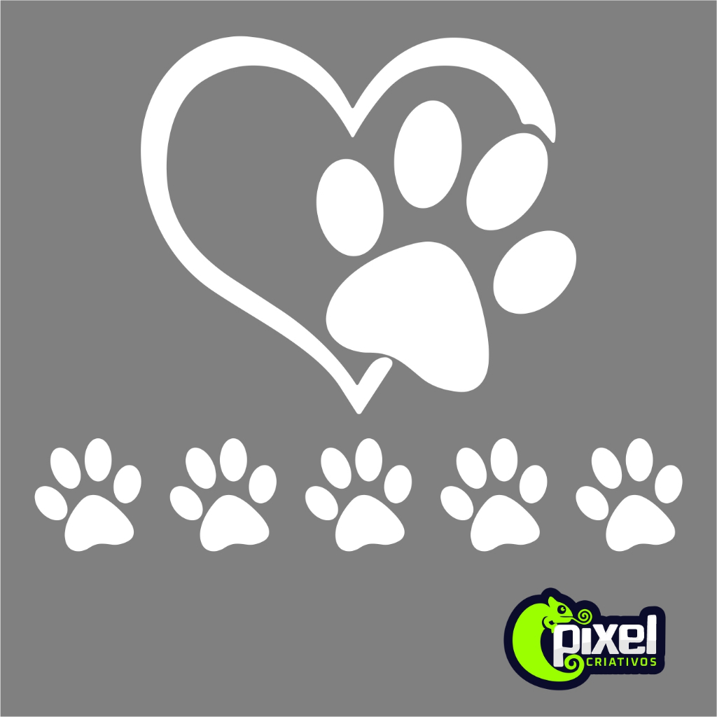 Adesivo Pata e Coração Cachorro - 6 adesivos - Carro, Moto, Parede, Vidro