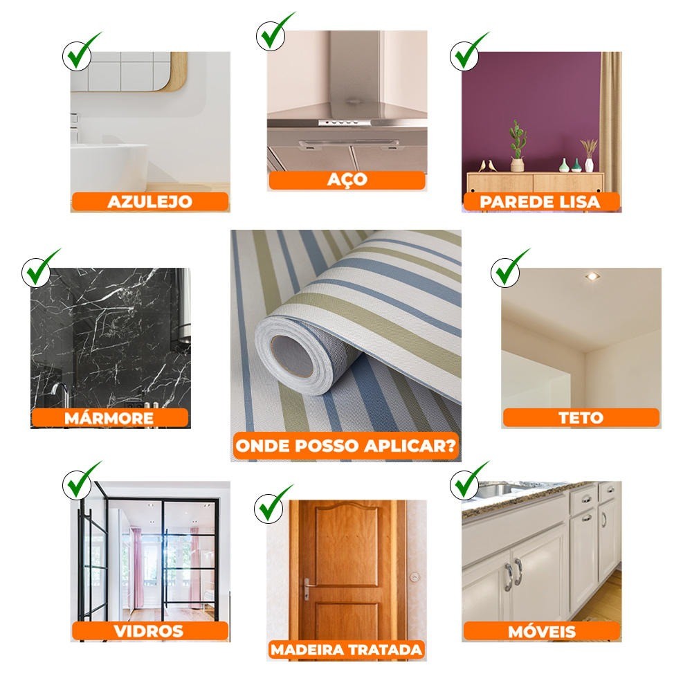 O Revestimento Vinílico e Papel de Parede Adesivo Listrado da Open Star reveste e decora os mais variados móveis, objetos e ambientes, sendo muito mais fácil de aplicar que um papel de parede ou adesivos convencionais, economizando tempo e dinheiro! - Especificações Técnicas Modelo: Listrado Bege e Cinza Tonalidade: Bege e Cinza Material: Vinil (PVC) - Premium Max (O Melhor) Cola: Acrílica Aquosa Acabamento: Matt (Fosco) Resistente: Produtos de limpeza de uso doméstico Impressão: HD Alta resolução Espessura: 220 Micra(0.22mm) Estilo: 2D Lavável: Sim Tamanho (Rolo): 60cm x 500cm (Rendimento: 3 m2) Peso: 754g - Durabilidade: 5 à 8 anos em ambientes Internos secos 2 à 4 anos em ambientes Internos e externos úmidos como banheiros e cozinhas ou com incidência de raios UV - Destaques Autoadesivo vinílico de fácil manuseio Impermeável. Antiestático e Antimofo Resistente a umidade e calor Suprime pequenas irregularidades da parede Não deixa resíduos Pode ser aplicado em paredes, portas, móveis e muito mais Facilmente ajustável durante a primeira colagem Manutenção simples: basta limpar normalmente com um pano úmido e macio com sabão neutro. Transforme sua casa em instantes. O Revestimento Vinílico possui um Adesivo forte e eficiente, permitindo que nos primeiros momentos da colagem possa ajustar o posicionamento sem danificar o material. - Itens Inclusos 1 Rolo (500cm x 60cm) de Revestimento Vinílico e Papel de Parede Adesivo - Onde Posso Aplicar? Pode ser aplicado em qualquer superfície lisa e limpa. Exemplo Paredes de gesso, Balcões, Azulejos sem porosidade ou relevos Vidros, Móveis entre outros. - Precauções com o Produto: Não aplicar em paredes com mofo, bolor, umidade ou infiltrações. Em aplicações de áreas externas o local deve ser coberto para evitar a incidência de chuva no material; Evite aplicar em paredes pintadas recentemente, aguarde no mínimo 10 dias Não aplicar em paredes com tonalidade escura ou por cima de outro papel de parede, pois poderá ocorrer transparência; Não adere a tinta lavável e acrílicas Não aplicar em superfícies rústicas, grafiato, texturizada, porosas, pois o produto irá descolar! Notas: 1 - A má calibração de cores em Monitores ou Smartphones podem ocasionar variação de até 15% na cor real do produto impresso e o tamanho do Produto pode variar de 1 a 5mm devido a medição manual. 2 - Antes de instalar, limpe a área onde será feita a aplicação com pano úmido e deixe secar. Em paredes recém-pintadas, recomenda-se a aplicação somente após 48 horas. Certifique-se de que a parede não esteja úmida. 3 - Remova toda gordura, poeira e quaisquer outros detritos que podem atrapalhar na fixação. 4 - Não Recomendamos a Aplicação direta em reboco, pisos paredes com texturas, paredes com infiltrações, bolor ou umidade, Veículos (não é um produto automotivo), não raspe o adesivo ou utilize objetos cortantes por cima do vinil. 5 - O vinil passa por processos na fabricação que podem causar diferença de tonalidade de um lote para outro. 6 - Evite limpar o revestimento com álcool, água sanitária ou outros produtos abrasivos. Recomendamos a limpeza com água e detergente neutro acompanhado de pano ou esponja macia. Quantos Rolos de Revestimento Vinílico (60x500cm) eu preciso para cobrir minha parede? 1 rolo equivale a 3 (m2) 3 rolos equivalem a 9 (m2) 5 rolos equivalem a 15 (m2) 10 rolos equivalem a 30 (m2) *Seja prevenido, adicione 10%. Como medir Áreas e Paredes? Revestimentos normalmente são medidos em metros quadrados (m2), assim, você precisa ter as medidas da área de aplicação onde ele será instalado. Exemplo: para uma parede de 2,5 metros de altura por 3 de largura será necessário, no mínimo, 7,5 m2 do revestimento (2,5m x 3m = 7,5 m2).