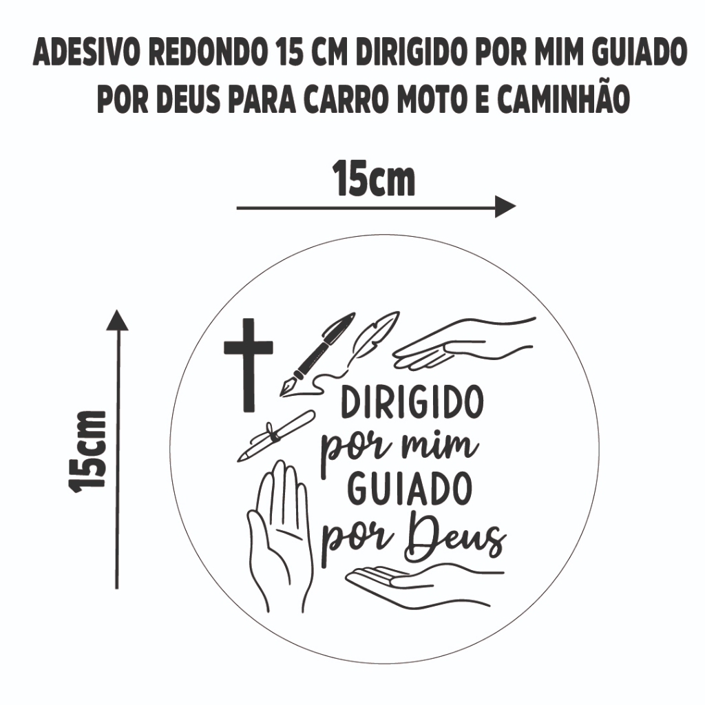 ADESIVO REDONDO 15 CM DIRIGIDO POR MIM GUIADO POR DEUS PARA CARRO MOTO E CAMINHÃO