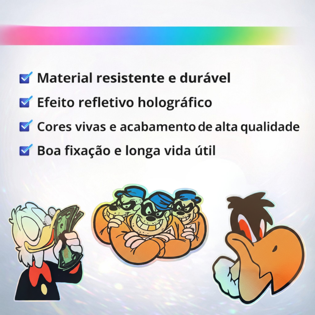O adesivo refletivo holográfico é ideal para personalização e destaque visual em diversos tipos de superfícies. Com acabamento brilhante e efeito holográfico, oferece excelente visibilidade, inclusive em ambientes com pouca luz. Perfeito para quem deseja estilo, personalidade e segurança visual em veículos ou objetos pessoais. Medidas: 10 cm x 6,5 cm (em média) Vários modelos para você escolher. Diferenciais: - Material resistente e durável - Efeito refletivo holográfico - Cores vivas e acabamento de alta qualidade - Boa fixação e longa vida útil Aplicação Pode ser aplicado em superfícies limpas e lisas como: - Carros, caminhões, ônibus e motos - Tanques de moto e capacetes - Bicicletas - Vidros e janelas - Smartphones e objetos pessoais Para melhor aderência, aplique sobre superfície limpa e seca.