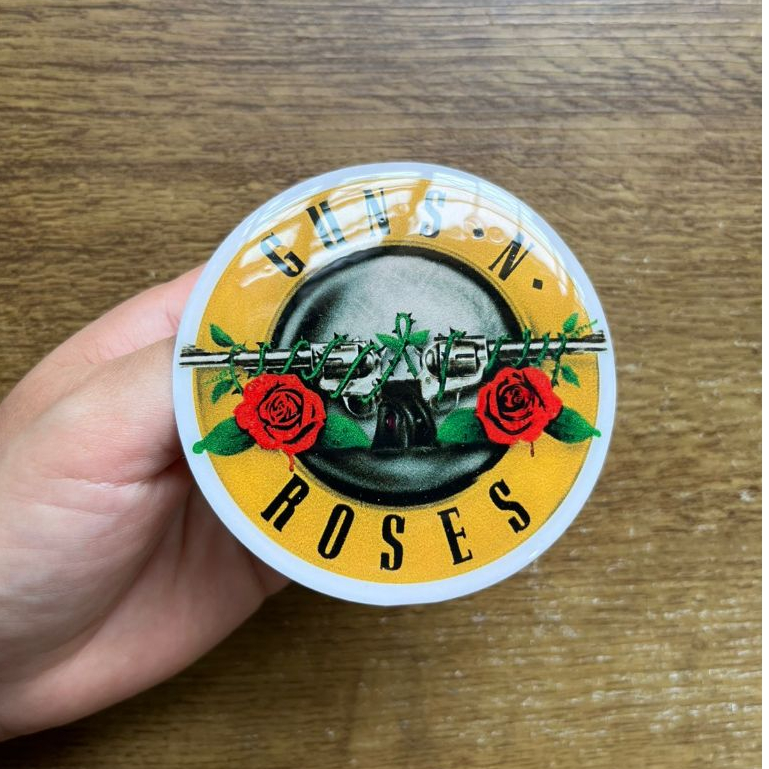 ADESIVO RESINADO GUNS N' ROSES Confeccionado em resina flexivel. Destaque e cole! Dica: Faça uma limpeza no local antes da aplicação. Tamanho:7,5x7,5cm