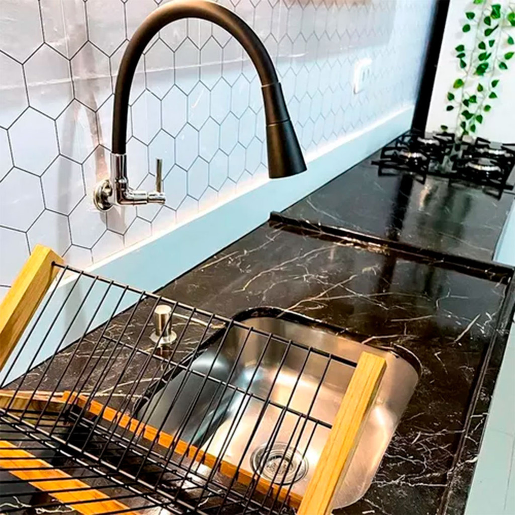 Adesivo Revestimento Mármore Preto Gold Impermeável Texturizado 1m X 60cm