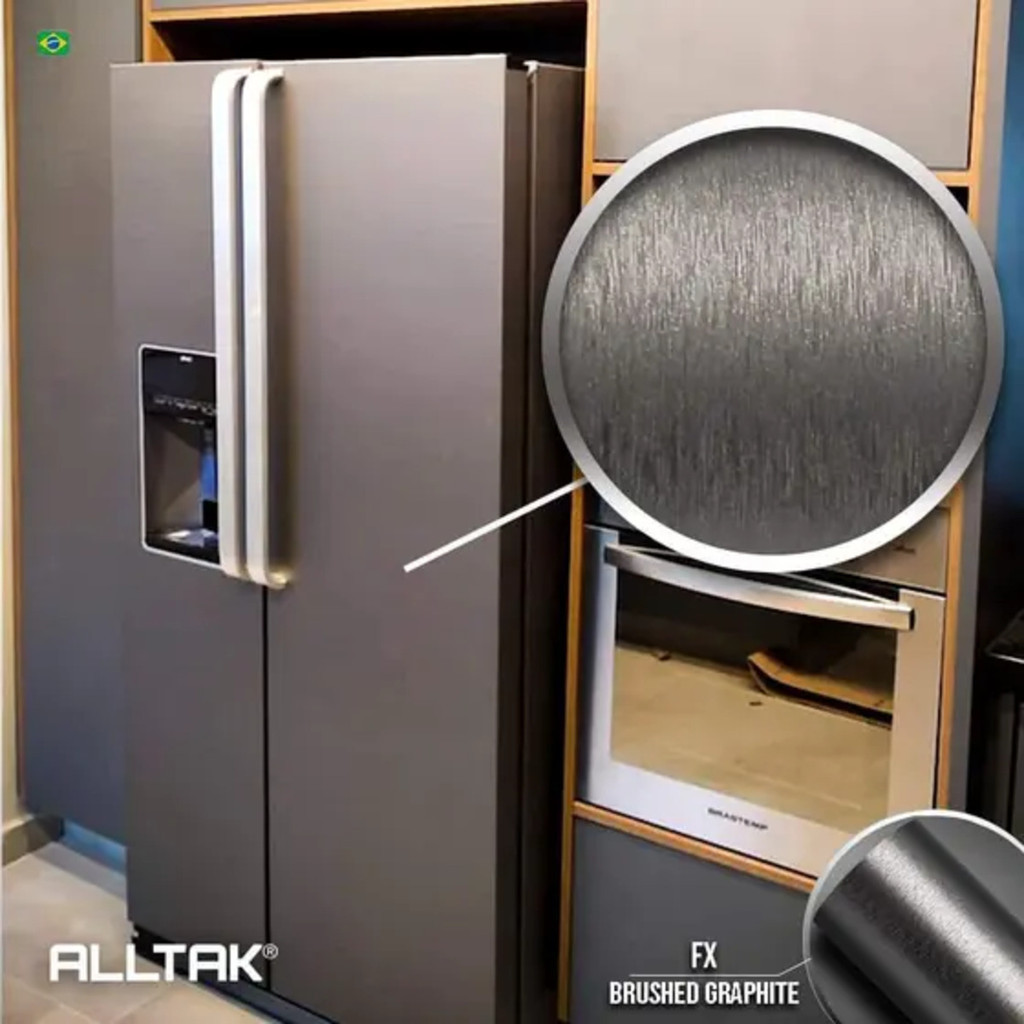 Adesivo Revestimento Vinil Aço Escovado Grafite Inox Texturizado Premium Geladeira Móveis 2,5mX50cm