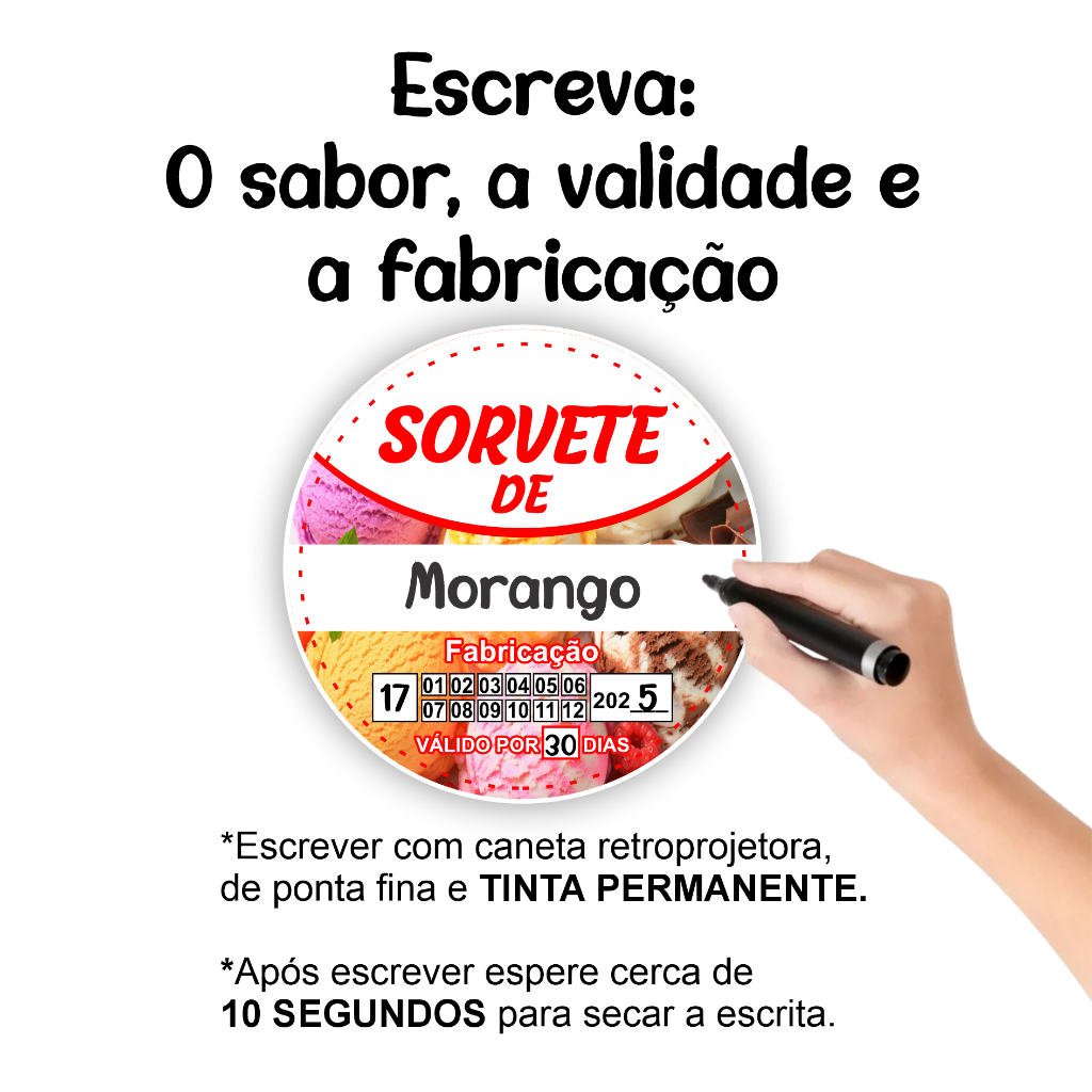 Adesivo Sorvete de 5x5cm 100un Vinil Impermeável Freezer Validade Fabricação Etiqueta Potes Embalagens