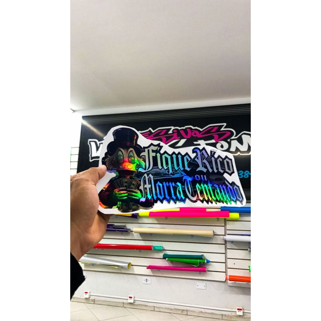 Adesivo tio patinhas fque rico holografico impressso 20cm