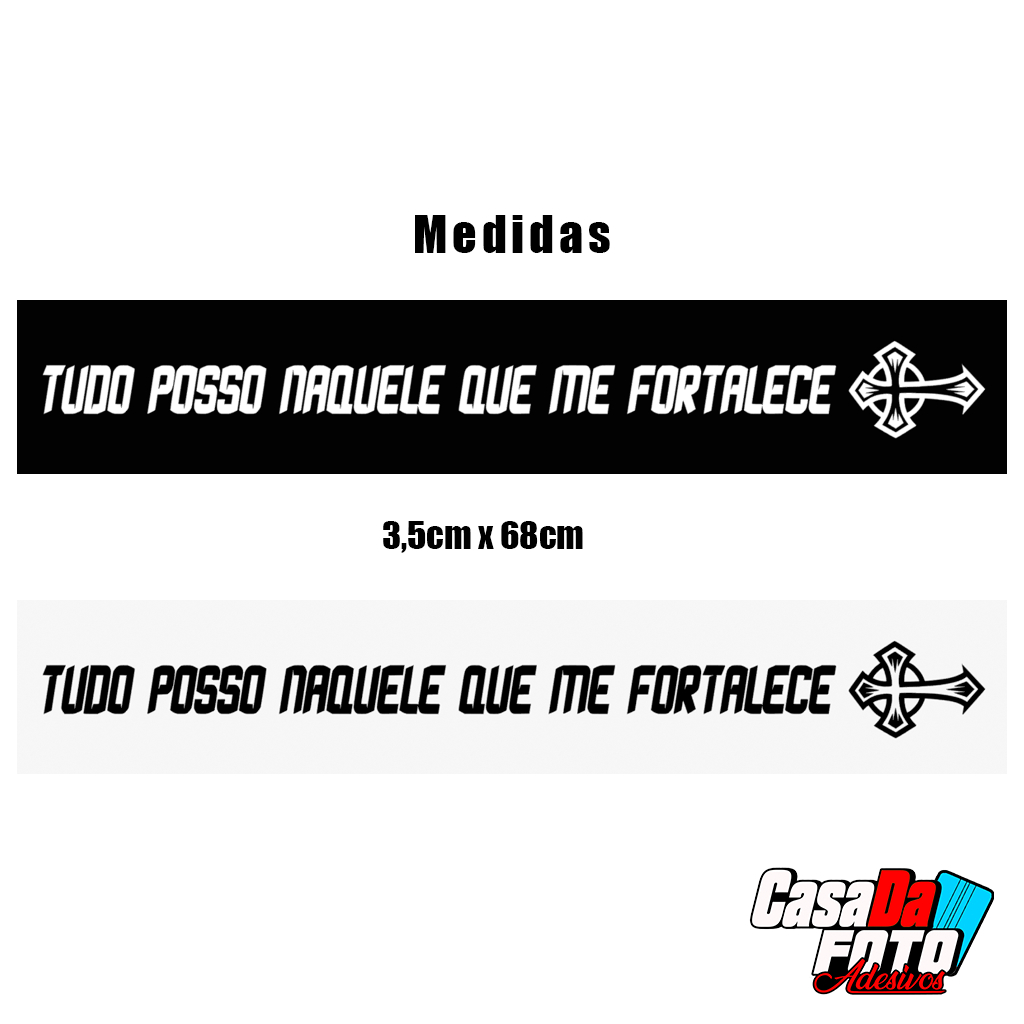 Adesivo Tudo posso naquele que me fortalece para paralama de moto 68cm x 3,5cm nas cores branco ou preto