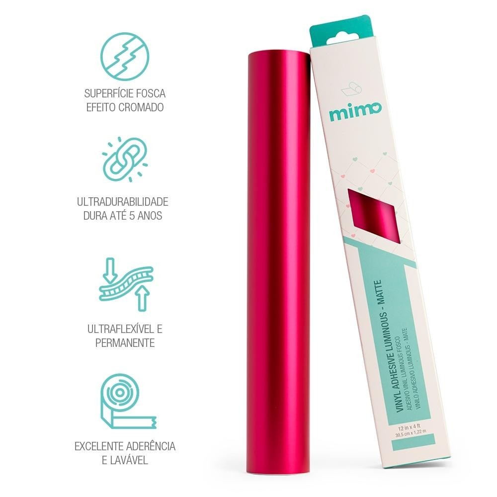 Adesivo Vinil Luminous Fosco - Rosa Fúcsia - Mimo - 30,5 cm x 1,22 m O Adesivo Vinil Luminous Fosco - Rosa Fúcsia - Mimo - 30,5 cm x 1,22 m é permanente e ultraflexível e tem acabamento luminous fosco na cor rosa fúcsia na superfície! Com a qualidade premium dessa linha especial de Vinil Adesivo Mimo, é possível criar projetos nada básicos, com cores e efeitos especiais! Informações Técnicas: Produto: Adesivo Vinil Luminous Fosco - Rosa Fúcsia - Mimo - 30,5 cm x 1,22 m - 1 Unid Contém: 1 Unidade Tamanho: 30,5 cm x 1,22 m Cor: Rosa Fúcsia Acabamento: Luminous Fosco Qualidade: Premium Cola da Superfície: Permanente Composição do Filme de Vinil: PVC Espessura do Filme de Vinil: 0,09mm Espessura da Cola Adesiva: 0,026mm Composição do Liner de Proteção: Papel Revestido de Polietileno 140 g Espessura do Liner de Proteção: 0,150mm Resistência: À água Máscara de Transferência Recomendada: Baixa e Média Fixação Plotters de Recorte Compatíveis: Todas as marcas do mercado Recomendação de Uso: Recomendamos usar em até 6 meses após aberto Recomendação de Conservação: guardar ao abrigo luz do sol, em local fresco, arejado e seco, longe de qualquer tipo de umidade Marca: Mimo Crafts Código de Fábrica (SKU): 06873