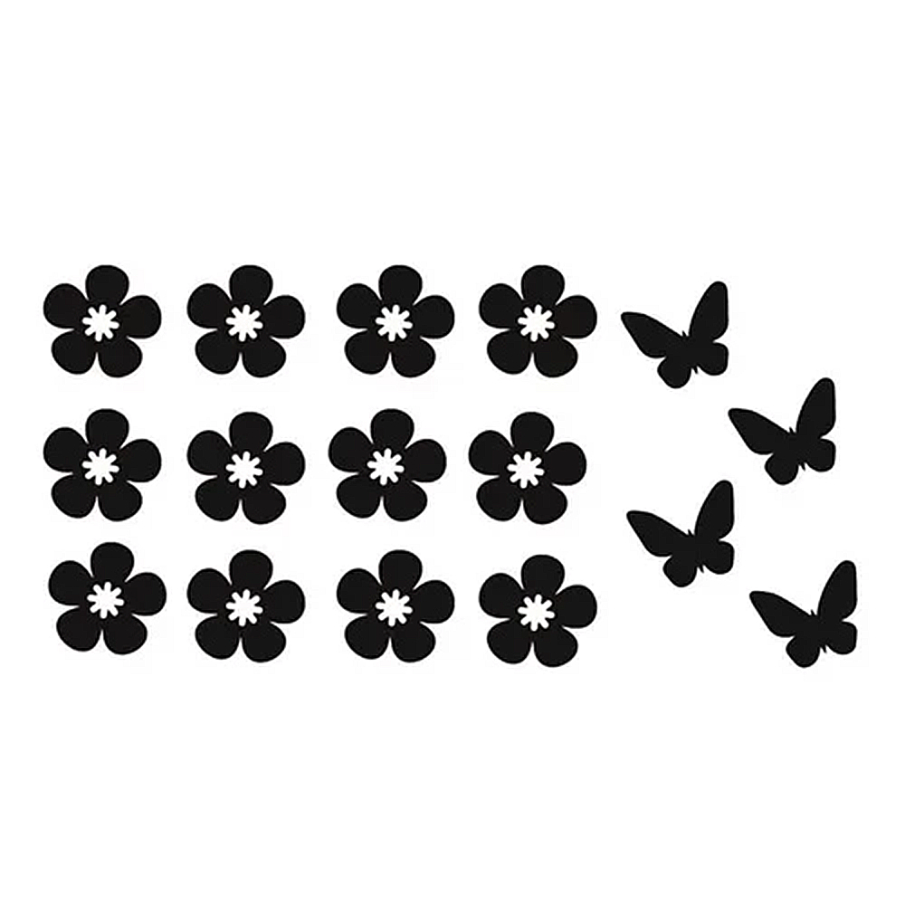 Adesivos 12 flores + 4 Borboletas Adesivo Vinil 4cm Cartela Personalizada