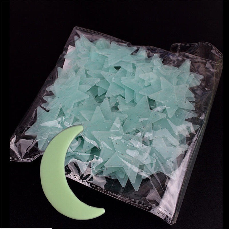Adesivos De Parede 3D Luminosos 100 Estrelas E 1 Lua Que Brilham No Escuro Decoração Artística Noturna