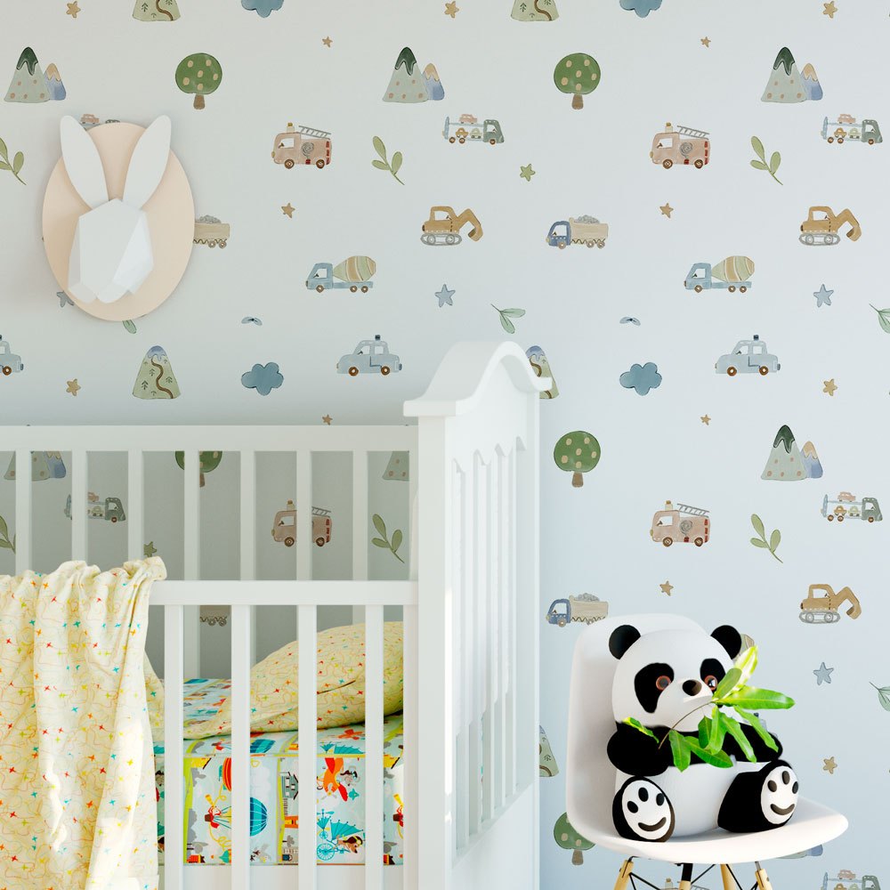 Adesivos de Parede Carrinhos Aquarela - Caminhões, Montanhas, Árvores e Ramos