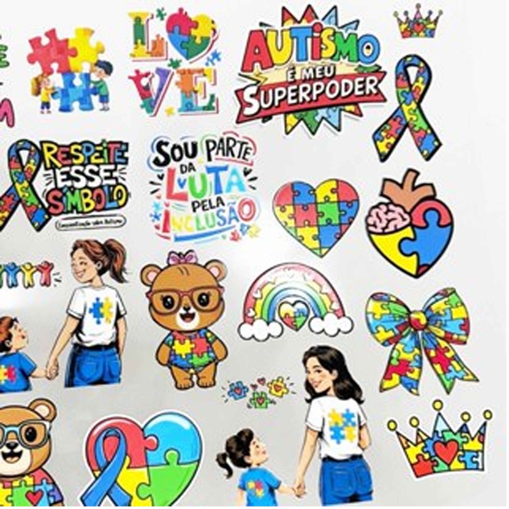 Adesivos DTF UV tema AUTISMO para Personalização em Geral. Diversas imagens.