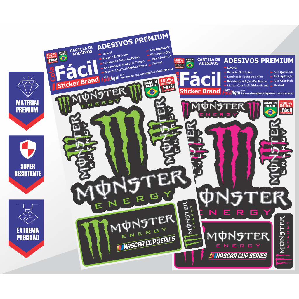 Adesivos Monster Energy Cartela Completa Alta Qualidade Lavável Resistente Sol e Chuva