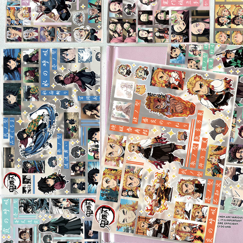 Adesivos Recortados De Anime Japonês Demon Slayer (8 Unidades)-Artesanais À Prova D'água Para Decoração De Colagem Estét