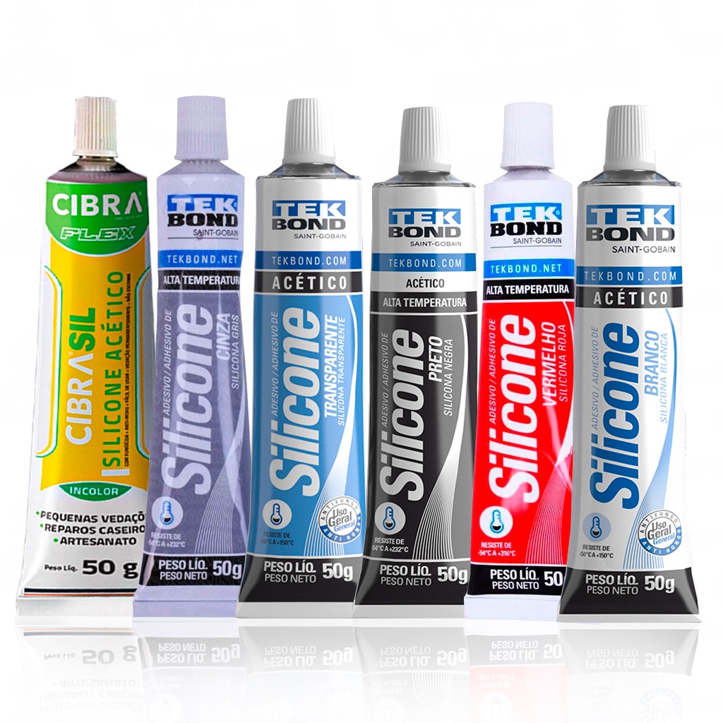 COMERCIAL VIPASA DISTRIBUIDORA. Adesivos Silicone Mini Tipo Bisnaga Sache 50g Várias Cores Acético Alta Temperatura Vedação Multiuso Descrição do produto: Silicone acético 50 g TekBond É considerado um silicone de uso geral, muito utilizado na construção civil na vedação e selagem de pias e vasos sanitários, box em banheiros, portas e janelas e etc... Possui excelente resistência aos raios UV e pode ser aplicado em áreas internas e externas. Características: Aparência visual: Pasta translúcida com odor característico (ácido acético) Densidade a 25 C (g/mL): 0,93 à 1,05 Tempo de formação de película: 5 à 15 minutos Temperatura ideal de aplicação: + 5 à 35C Temperatura de trabalho: - 50 à 150C Alongamento à ruptura: ?800 % Dureza Shore A: 25 Cura gradativa a 23C e 55% U.R. após 24 horas: ?3 mm 50 gramas *Este produto em vidros laminados, metal corrosível, espelhos, superfícies pintadas e/ou porosas, superfícies alcalinas, aquário, acrílicos, concreto, cimento, tijolo, pedra calcária, zinco, placa de aço galvanizado. Produto muito bom excelentíssimo em acabamento! COMERCIAL VIPASA DISTRIBUIDORA.