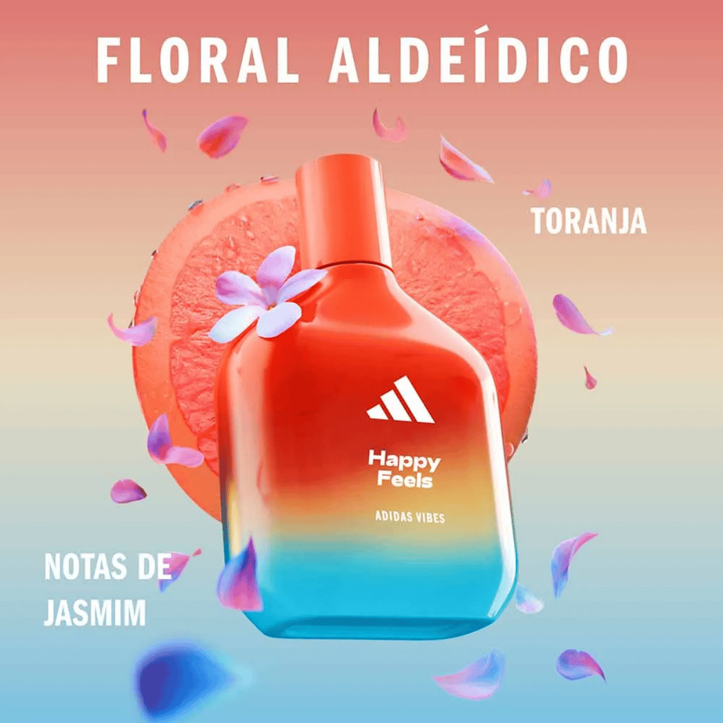 Vibes Happy Feels Eau de Parfum Uma fragrância envolvente que captura a essência de alegria e positividade. Desenvolvido para transmitir confiança e elevar o seu humor, este perfume faz parte da inovadora coleção Adidas Vibes, composta por seis fragrâncias distintas, cada uma criada para evocar uma sensação única. Combinando elementos florais e frutados, o Happy Feels é ideal para quem busca uma fragrância que exala vivacidade e otimismo, perfeita para acompanhar seu estilo de vida dinâmico e alegre. A fragrância de Vibes Happy Feels: Notas de topo, compostas por acordes de Goiaba, Manga e Limão prensado a frio, criam uma abertura fresca e vibrante. No coração, a mistura de Frésia e Nectarina com Gerânio Egito adiciona um toque floral suave e sofisticado. As notas de fundo de Óleo de Cedro e Madeira de Louro completam a fragrância com um toque amadeirado e acolhedor, tornando-a perfeita para o uso diário ou ocasiões especiais. Para uma aplicação perfeita : Borrife o perfume a uns 15 cm da pele, nas áreas quentes do corpo onde há maior circulação sanguínea, como pulso, dobras dos braços, nuca, pescoço. Como aumentar a fixação do Vibes Happy Feels Eau de Parfum? Para maior fixação, mantenha a pele sempre hidratada e nunca esfregue o perfume em contato com a pele.