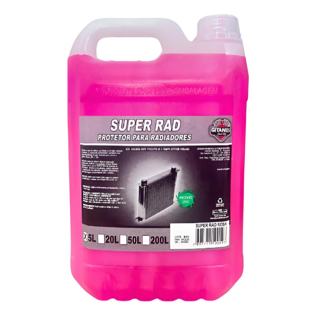 ATENÇÃO!!! SE PRECISAR COMPRAR MAIS DE 2 ADITIVOS POR FAVOR COMPRAR SEPARADO!!! Proteja o sistema de arrefecimento do seu motor com Gitanes Super Rad! O Aditivo Gitanes Super Rad foi desenvolvido para oferecer proteção máxima contra corrosão e cavitação no sistema de arrefecimento. Sua fórmula ajuda a manter a temperatura ideal de trabalho do motor, evitando superaquecimentos e prolongando a vida útil de mangueiras e bomba dágua. Conteúdo: Galão de 5 Litros. Cor: Rosa. Benefícios: Protege metais (inclusive alumínio), evita fervura e congelamento. Praticidade: Ideal para completar o sistema ou troca completa. 13/02/26