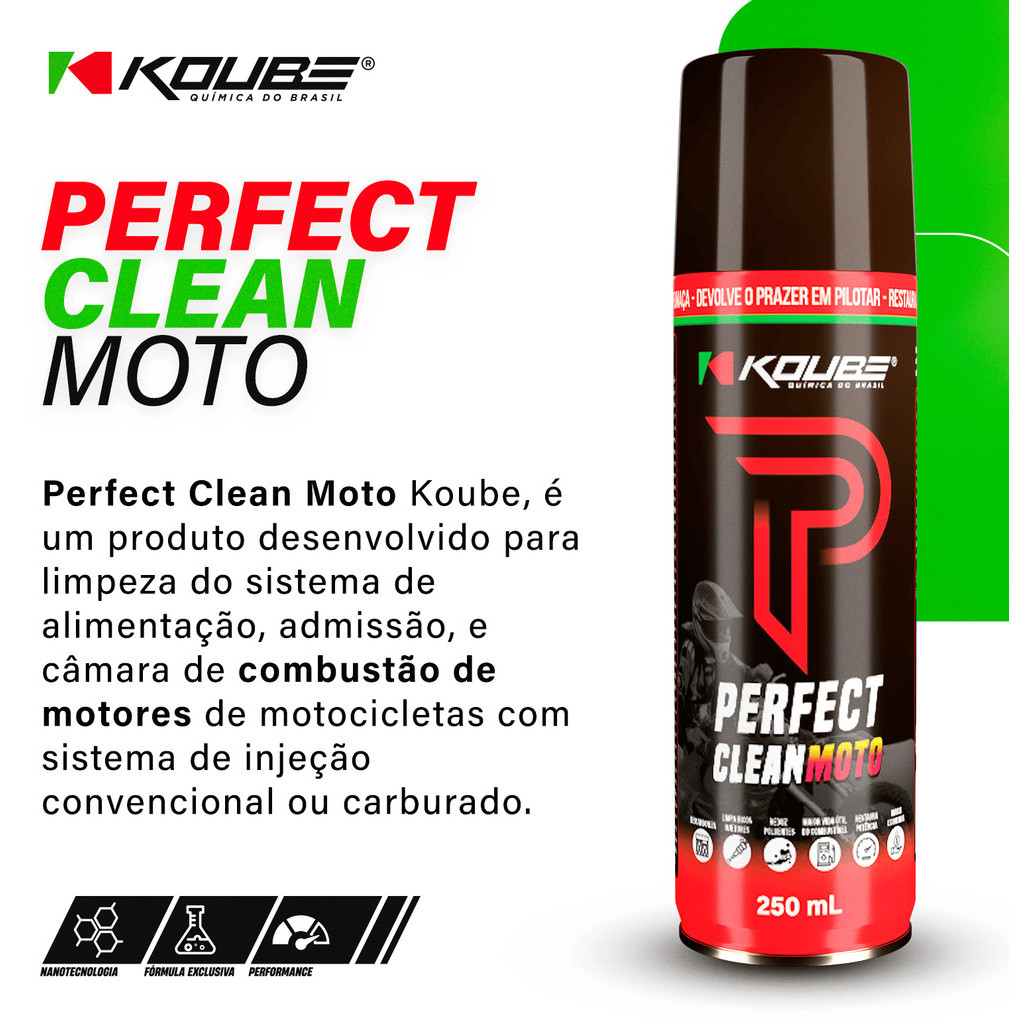 PERFECT CLEAN MOTO — LIMPEZA PROFUNDA E DESEMPENHO REAL PARA SUA MOTOCICLETA Se a sua moto apresenta falhas na aceleração, consumo excessivo de combustível, perda de desempenho ou sofre com os efeitos de combustível adulterado, o problema quase sempre está no acúmulo de carvão, borras e incrustações no sistema interno do motor. O Perfect Clean Moto Koube foi desenvolvido exatamente para isso: promover uma limpeza interna completa do sistema de alimentação, admissão e câmara de combustão, sem desmontar o motor. O QUE O PERFECT CLEAN MOTO FAZ NO SEU MOTOR Limpa profundamente o sistema de alimentação e admissão Remove e dissolve carvão, borras e incrustações Atua diretamente na câmara de combustão Transforma a sujeira em micropartículas gasosas, eliminadas no funcionamento normal Reduz falhas causadas por combustível de baixa qualidade Contribui para a redução do consumo excessivo Protege válvulas, cilindros e catalisadores Prolonga a vida útil do motor e do combustível no tanque Resultado prático: motor mais limpo, funcionamento mais suave, melhor resposta e mais eficiência. INDICAÇÃO DE USO Indicado para motocicletas com: Injeção eletrônica Sistema carburado Uso urbano intenso Alta quilometragem Histórico de combustível adulterado Manutenção preventiva periódica MODO DE USO Agite bem antes de usar Em uso corretivo: Adicione toda a lata no tanque com até 1/4 do volume de combustível Deixe o motor funcionar por 10 a 20 minutos em marcha lenta Se possível, rode de 5 a 10 km Em uso preventivo: Utilize 1 lata por tanque, periodicamente COMPOSIÇÃO Destilados de petróleo hidrotratados leves, hidroximetano, dimetilbenzeno, nafta destilada leve. CUIDADOS IMPORTANTES Evite contato com superfícies pintadas Utilize funil na aplicação Produto inflamável Não reutilizar a embalagem Manter fora do alcance de crianças e animais ❓ PERGUNTAS FREQUENTES (FAQ) 1. Posso usar em moto carburada e injetada? Sim. O Perfect Clean Moto é compatível com motos carburadas e com injeção eletrônica. 2. Preciso desmontar alguma peça da moto? Não. A limpeza é feita internamente, apenas adicionando o produto ao tanque. 3. Em quanto tempo percebo os resultados? Os efeitos começam durante o uso. Em motos mais sujas, a melhora completa ocorre após alguns ciclos de funcionamento. 4. Ajuda a reduzir consumo excessivo de combustível? Sim. Ao limpar o sistema de alimentação e combustão, o motor passa a trabalhar de forma mais eficiente. 5. Posso usar como manutenção preventiva? Sim. O uso periódico ajuda a evitar falhas, proteger componentes internos e prolongar a vida útil do motor.