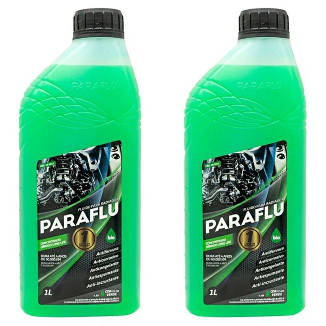 Somos a Go! Mec Auto Peças, estamos no ramo de autopeças para veículos nacionais e importados há quase duas décadas, nosso estoque conta com uma variedade de 45000 itens. Todos os nossos produtos são novos, originais e com garantia.CARACTERÍSTICAS:Produto novo de ótima qualidadeProduto ecologicamente corretoMatéria prima de fontes renováveisProduzido com água desmineralizadaBiodegradávelConcentradoCor: VerdeHíbridoESPECIFICAÇÕES TÉCNICAS:Diluição: 40% / 60% (água desmineralizada)Possui uma formulação balanceada a base de Glicol e inibidores de corrosão híbridos que foram desenvolvidos com a mais alta tecnologia para oferecer máxima proteção para o sistema de arrefecimento de motores endotérmicos de motocicletas, automóveis, utilitários, caminhões, máquinas agrícolas e motores estacionários. Paraflu Bio Híbrido possui a tecnologia Long Life HOAT (Hibrid Organic Acid Tecnology), que aumenta a vida útil do motor lubrificando a bomba d’água, a válvula termostática, evitando o ressecamento das mangueiras e protegendo contra a corrosão todos os tipos de motores. Sua formulação eleva o ponto de ebulição e reduz o ponto de congelamento, protegendo também contra o superaquecimento e o congelamento além de proteger contra a cavitação e não atacar os sensores eletrônicos. Possui propriedade antiespumante e anti-incrustante. Quando utilizado corretamente com água desmineralizada, protege por até 120.000km.IMPORTANTE:Valor do ParGarantia de 3 mesesNão nos responsabilizamos pelo mau uso do produto.