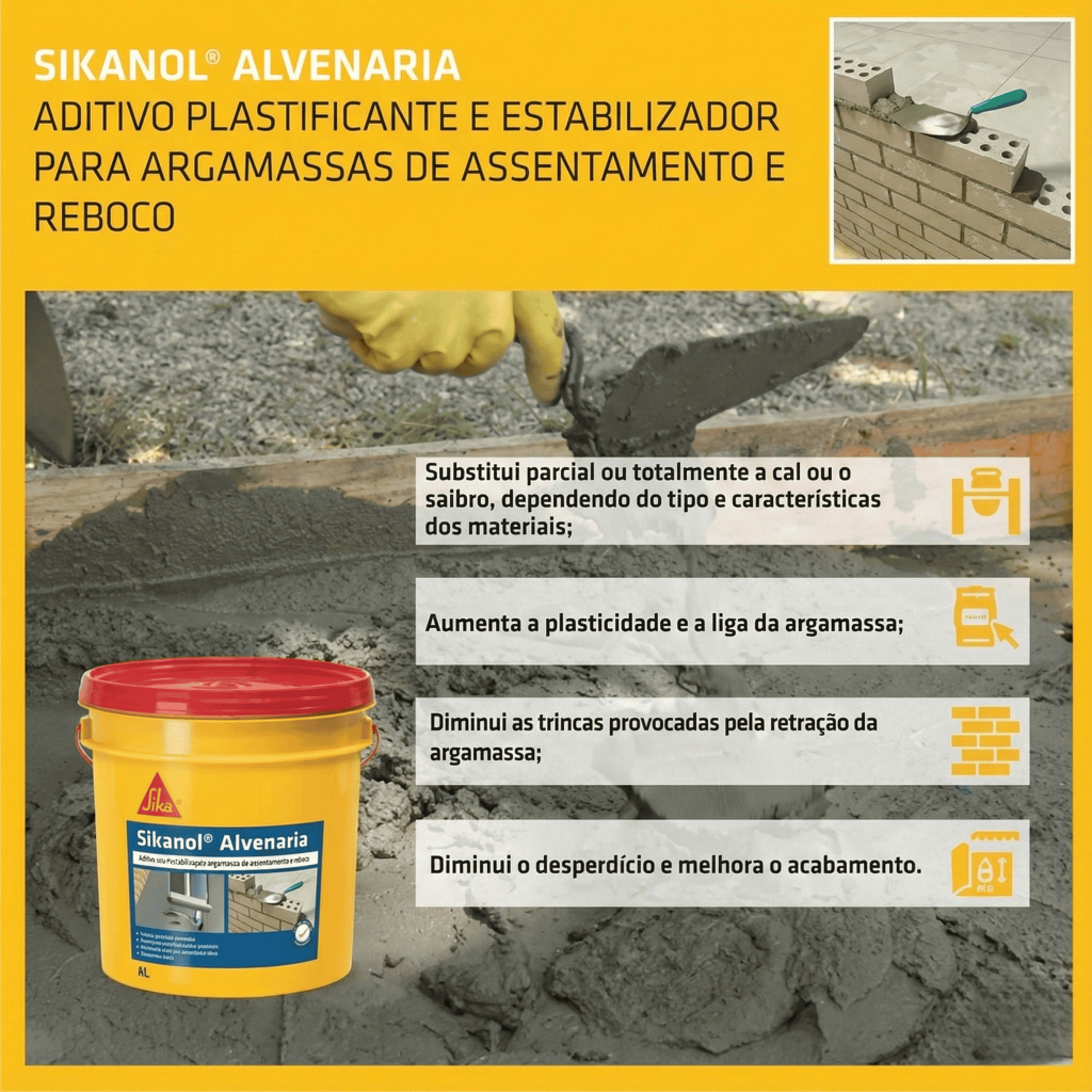 Aditivo Plastificante para Argamassa Sikanol Alvenaria Sika Assentamento e Reboco