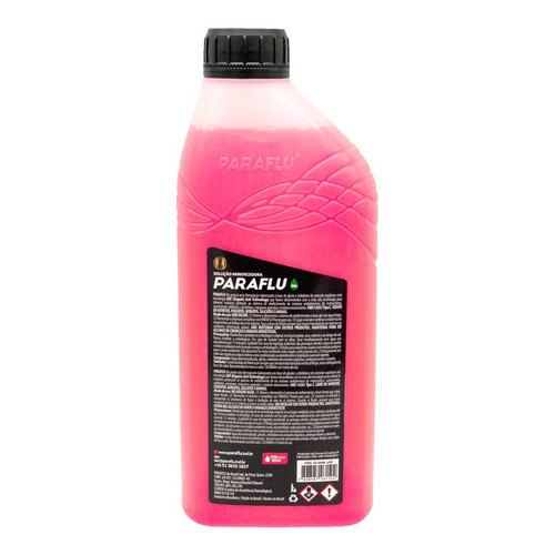 Aditivo Pronto Para Uso - Paraflu A solução arrefecedora Paraflu Bio Orgânico Pronto para usar possui uma formulação balanceada a base de glicol e inibidores de corrosão orgânicos que foram desenvolvidos com a mais alta tecnologia para oferecer máxima proteção para o sistema de arrefecimento de motores endotérmicos de motocicletas, automóveis, utilitários, caminhões, máquinas agrícolas e motores estacionários. Paraflu Bio Orgânico possui a tecnologia Long Life OAT (Organic Acid Tecnology), que aumenta a vida útil do motor lubrificando a bomba d’água, a válvula termostática, evitando o ressecamento das mangueiras e protegendo contra a corrosão todos os tipos de motores. Sua formulação eleva o ponto de ebulição e reduz o ponto de congelamento, protegendo também contra o superaquecimento e o congelamento além de proteger contra a cavitação e não atacar os sensores eletrônicos. Possui propriedade antiespumante e anti-incrustante. Quando utilizado corretamente protege por até 120.000km. NBR 14261 Tipo C – Orgânico – Pronto para usar – Produto ecologicamente correto – Biodegradável – Matéria prima de fontes renováveis – Produzido com água desmineralizada – Cor: Rosa – Diluição: Não diluir! Produto já pronto para aplicação. Este produto possui 50% de aditivo concentrado e 50% de água desmineralizada. Cor: Rosa Embalagem: 1 Litro