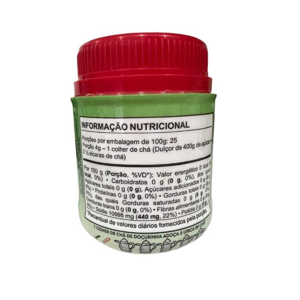 | Adoçante Doçurinha Ciclamato e Sacarina Sódica Pó com 100g | R$ 37,29 | — | 4.9/5 | — |