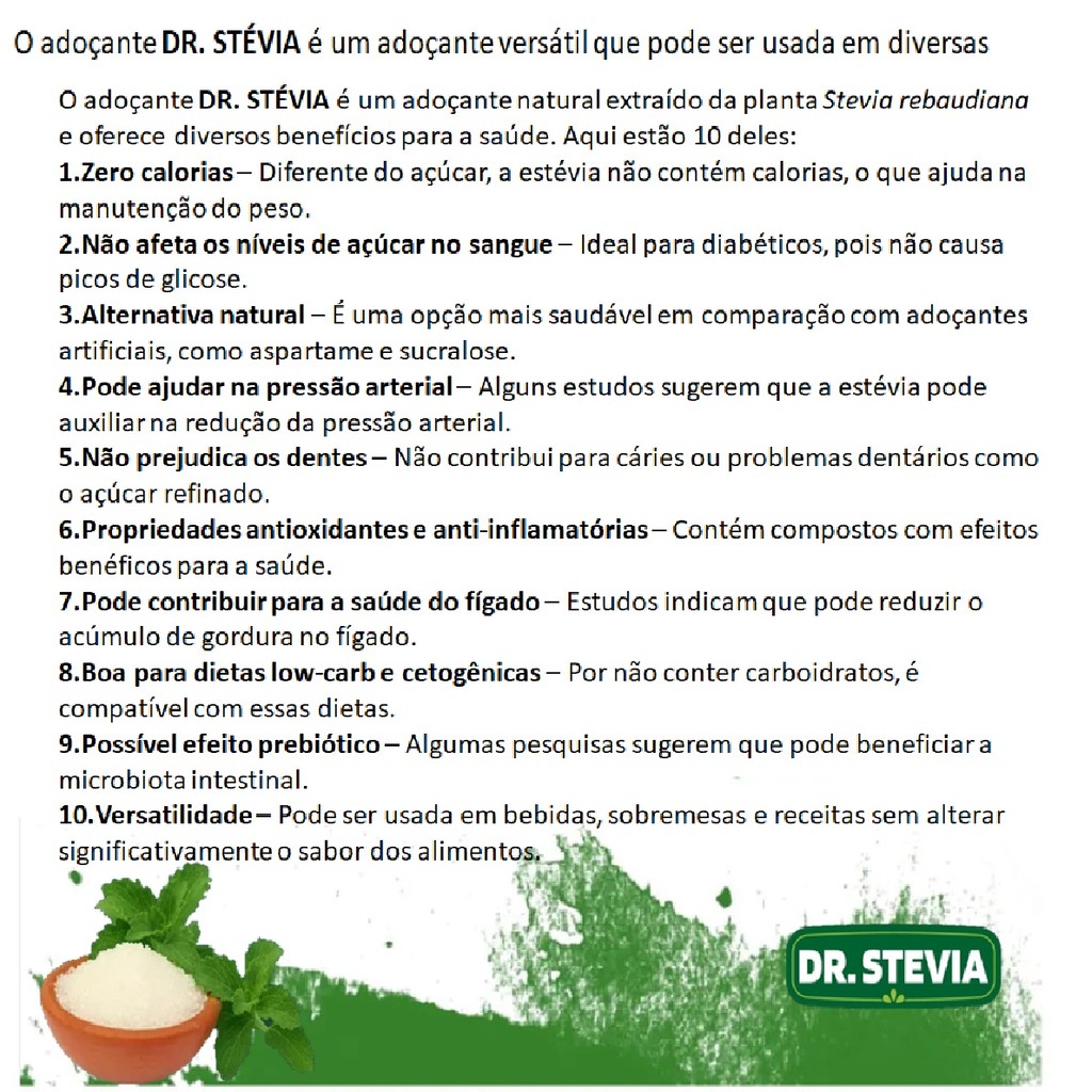 Adoçante Natural Stévia Dr.Stevia Sem Amargo sem glúten