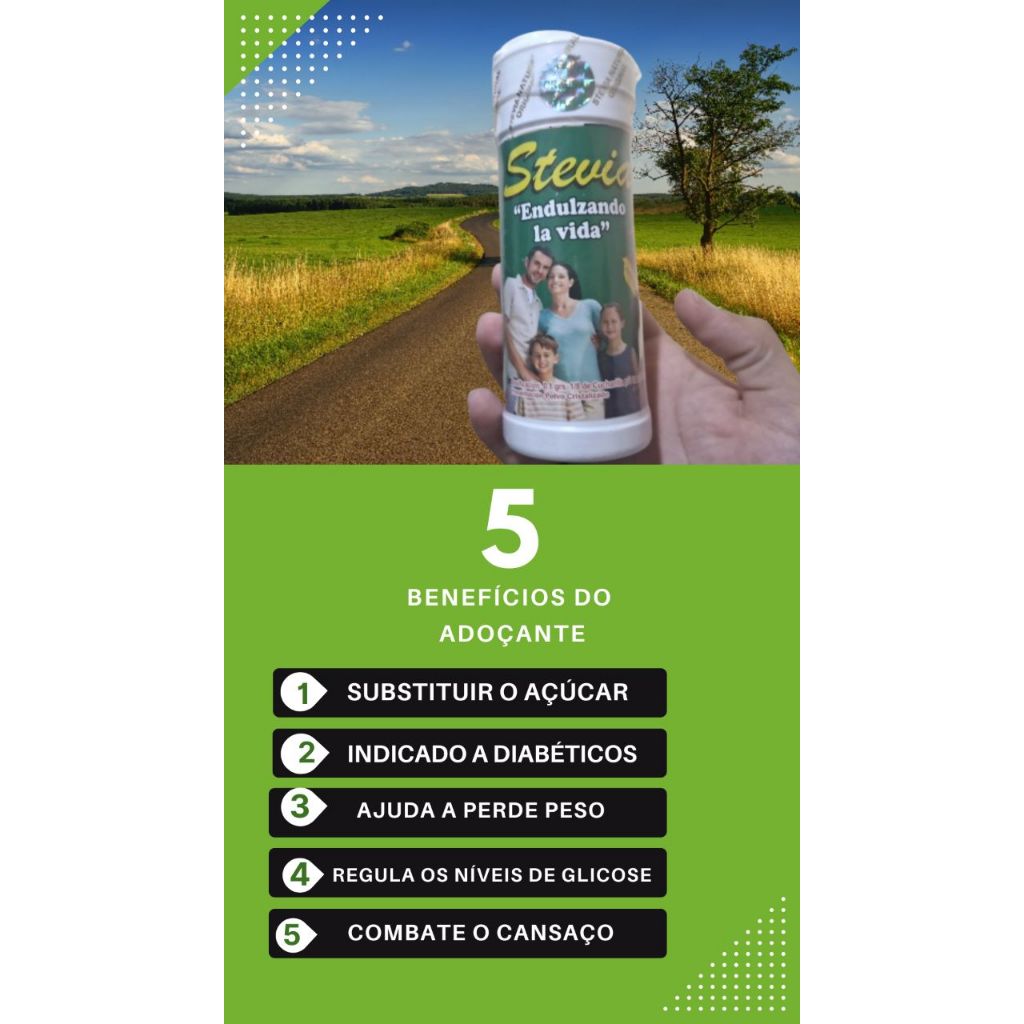 | Adoçante Stevia Boliviano KIT 3 UN este produto | R$ 98,00 | 28% | 4.9/5 | 9 |
