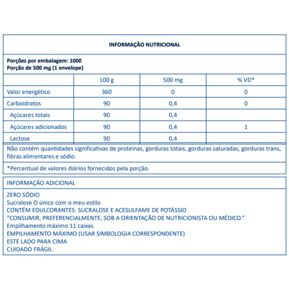 Adoçante Sucralose Institucional em pó Linea 1000 Sachês de 500mg