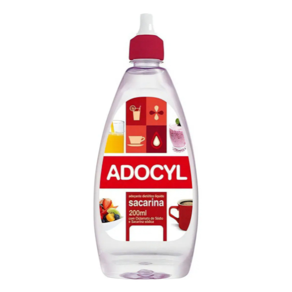 Adocyl Adoçante Sacarina 200ml: Zero Caloria, Doçura Clássica e Uso Diário (Econômico) O Adoçante Líquido Adocyl Sacarina de 200ml é ideal para quem busca doçura intensa sem calorias. A Sacarina é um adoçante artificial clássico, muito mais doce que o açúcar. Ideal para bebidas quentes e frias. Sacarina (Zero Caloria): Doçura intensa, ideal para dietas de restrição calórica e diabéticos. 200ml Econômico: Alto rendimento para uso familiar contínuo. Uso Diário: Alternativa saudável e saborosa. Formato Líquido: Fácil dosagem e uso prático em bebidas. Use a quantidade de gotas necessária para adoçar. Consultar um médico se for diabético. A doçura intensa e a economia que você busca, com a tradição Adocyl.