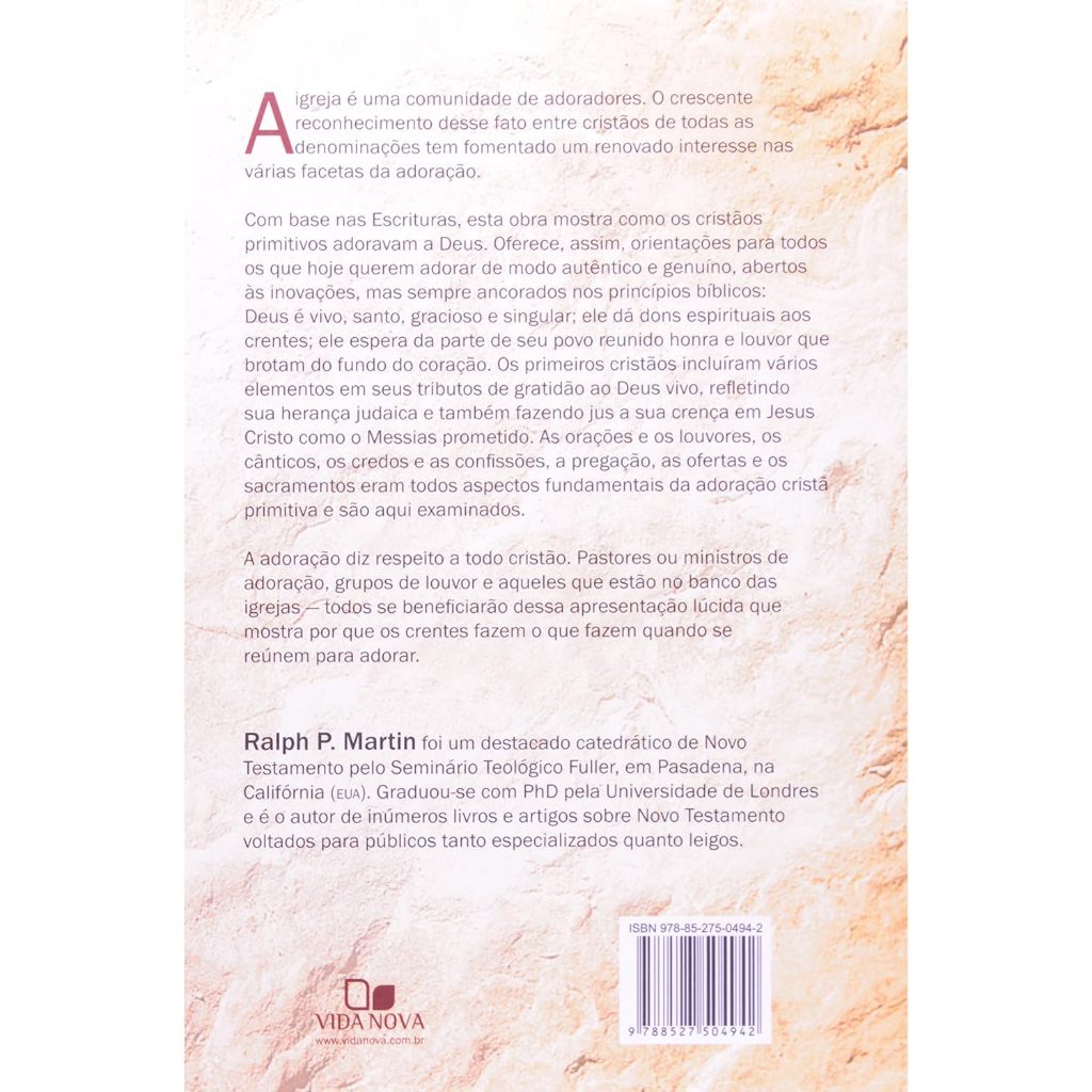 A igreja é uma comunidade de adoradores. O crescente reconhecimento desse fato entre cristãos de todas as denominações tem fomentado um renovado interesse nas várias facetas da adoração. Com base nas Escrituras, esta obra mostra como os cristãos primitivos adoravam a Deus. Oferece, assim, orientações para todos os que hoje querem adorar de modo autêntico e genuíno, abertos às inovações, mas sempre ancorados nos princípios bíblicos: Deus é vivo, santo, gracioso e singular; ele dá dons espirituais aos crentes; ele espera da parte de seu povo reunido honra e louvor que brotam do fundo do coração. Os primeiros cristãos incluíram vários elementos em seus tributos de gratidão ao Deus vivo, refletindo sua herança judaica e também fazendo jus a sua crença em Jesus Cristo como o Messias prometido. As orações e os louvores, os cânticos, os credos e as confissões, a pregação, as ofertas e os sacramentos eram todos aspectos fundamentais da adoração cristã primitiva e são aqui examinados. Título: Adoração Na Igreja Primitiva Subtítulo: 2° Edição Revisada Autor(es): Ralph P. Martin Capa: Brochura Acabamento: Laminação Fosca Páginas: 176 Peso: 0,210 k.g ISBN: 9788527504942 Editora: Vida Nova
