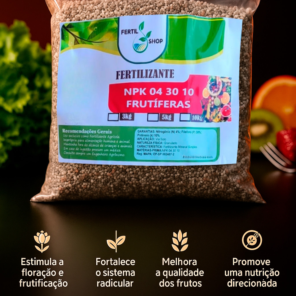 Adubo Fertilizante Agrícola Frutíferas NPK 04-30-10 – Nutrição para Plantio e Crescimento-500g à 3kg