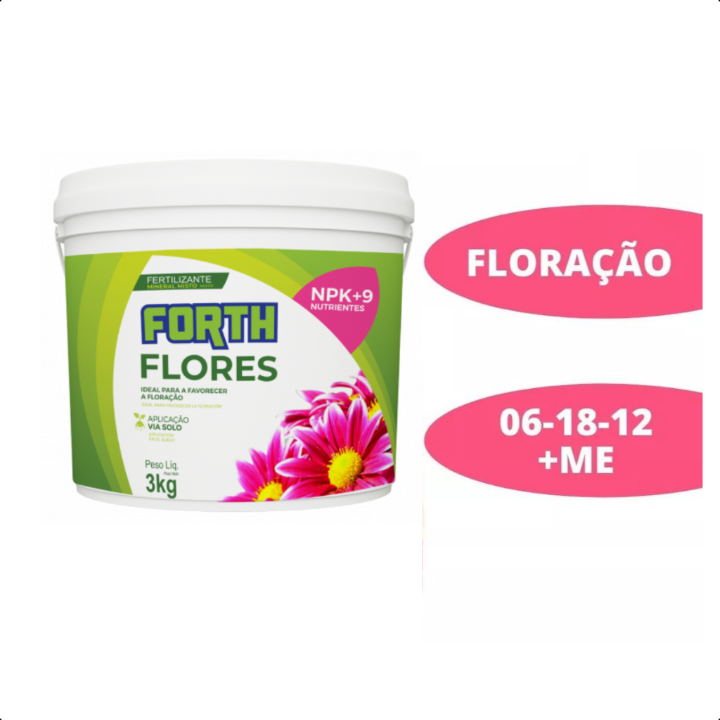 Antes de concluir a compra certifique-se da quantidade de unidades que estão sendo adquiridas. FORTH Flores – Mais flores, por mais tempo, o ano todo 🌸🌼 O FORTH Flores é o adubo ideal para quem ama plantas floridas. Sua fórmula balanceada mantém as plantas bem nutridas, com folhas verdes e saudáveis, e estimula floradas intensas, mais abundantes e duradouras. Com o uso correto, seu jardim fica sempre florido — é como ter primavera o ano inteiro! Indicado para flores cultivadas em vasos, jardineiras e canteiros, o FORTH Flores atua diretamente no fortalecimento da planta e no estímulo à floração contínua. ✅ Utilidades e benefícios Estimula floradas mais abundantes e prolongadas Mantém as plantas nutridas e com folhas bem verdes Auxilia na formação de botões florais Ideal para flores ornamentais em vasos e canteiros Excelente para manutenção e estímulo da floração Fácil aplicação e ótimo rendimento 🌱 Dosagem e modo de uso Medida padrão: 1 colher de chá = 8 g 🪴 Plantas em vasos ou jardineiras Dosagem conforme o tamanho do vaso: 3 L ou 15 × 15 cm: ½ colher 8 L ou 20 × 20 cm: 1 colher 25 L ou 30 × 30 cm: 3 colheres 100 L, 50 × 50 cm ou maior: 12 colheres Aplicação: A cada 15 dias, espalhar o adubo sobre a terra e, em seguida, regar até diluir o produto, permitindo que a água comece a sair pelos furos do vaso. 🌸 Canteiros Dosagem: 50 g por m² Aplicação: A cada 30 dias, espalhar o adubo sobre a terra ao redor das plantas e regar logo em seguida, até diluir o adubo da superfície. ⚠️ Recomendações importantes Não aplicar o adubo diretamente sobre as folhas. Evitar aplicações nos horários mais quentes do dia. Regar sempre após a aplicação. Para o plantio das flores, utilize FORTH Plantio. Iniciar a adubação com FORTH Flores 30 dias após o plantio. 📦 Especificações do produto Produto: FORTH Flores Tipo: Adubo mineral para plantas floríferas Natureza física: Farelado mineral misto Indicação: Flores ornamentais em vasos, jardineiras e canteiros Aplicação: Via solo Validade: 3 anos a partir da data de fabricação
