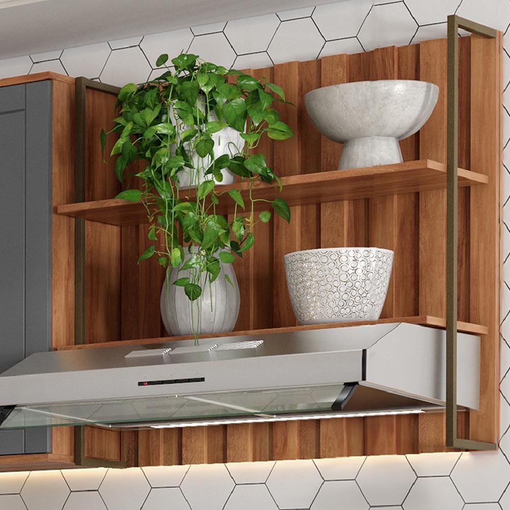 Aéreo Ripado Nogal com Prateleiras e Tubo Ouro Velho Carraro