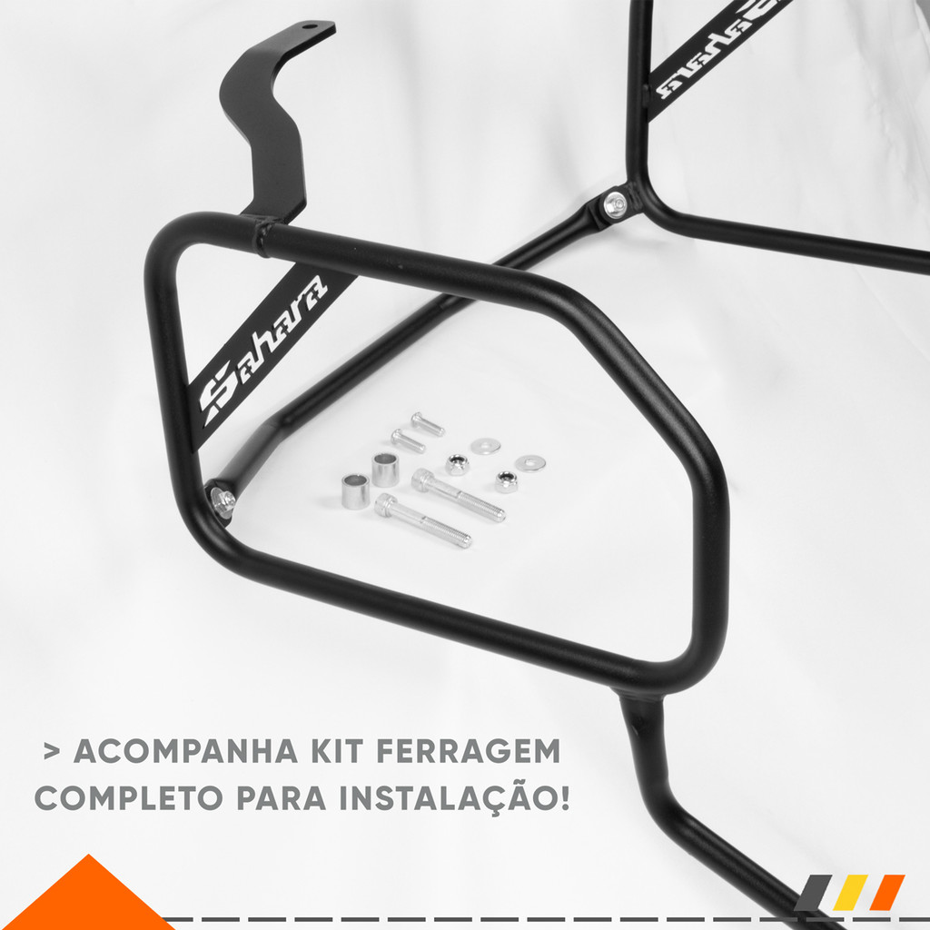 Afastador De Alforge Sahara 300 cc Personalizado Gbs O afastador de Alforge para Honda Sahara Xre 300 foi projetado para se aplicar a os principais alforges laterais disponíveis no mercado, produzido em aço carbono de alta qualidade e finalizado com pintura epóxi, garante o melhor acabamento e alta durabilidade. Ideal para quem busca um acessório para viagens pois evita que os alforges se choquem ou fique raspando na motocicleta. Para o dia a dia garante proteção para a motocicleta em pequenas quedas que podem ocorrer evitando danificar as carenagens e componentes. Benefícios: - Possui reforço traseiro o que deixa o conjunto muito robusto, servindo assim também como proteção para a motocicleta em caso de quedas. - Capacidade de carga 10 kg cada lado. - Utiliza pontos de fixação já existentes na motocicleta. - Estética agressiva da linha Big Trail. - Durabilidade e proteção extra. - Fabricado em aço carbono com chapa de 1.5mm e tubo de 5/8 Aplicação: Honda Sahara Xre 300 (2024, 2025, 2026 .... Itens inclusos: 1 - Afastador (2 Peças). 1 - Haste do afastador. 6 - Parafusos. 4 - Porcas. 6 - Arruelas. 2 - Buchas. ------------------------------------------------------------------------- Marca: GBS Garantia de Fábrica: 90 dias Nota Fiscal: Produtos acompanham nota fiscal e estão prontos para envio imediato. Aviso de Direitos Autorais: Todas as fotos e textos contidos neste anúncio possuem direitos autorais. Não utilizar sem prévia aprovação. ------------------------------------------------------------------------- A equipe da Blx Race Parts está à disposição para esclarecer qualquer dúvida! >> Por que escolher a Blx Race Parts? Confiança e Qualidade: Todos os nossos produtos são testados e aprovados por especialistas, garantindo a melhor performance para sua motocicleta. A Rota Racing é conhecida por sua excelência no mercado de peças para motos off-road. Atendimento Especializado: Nossa equipe está sempre pronta para ajudar você a encontrar a melhor solução para sua motocicleta. Oferecemos suporte personalizado para garantir que você faça a escolha certa. Compromisso com o Cliente: A satisfação dos nossos clientes é a nossa prioridade. Oferecemos garantia de fábrica e nota fiscal em todos os produtos, além de entrega rápida e eficiente. Ampla Variedade: Disponibilizamos uma vasta gama de cores e modelos para atender às suas preferências e necessidades específicas, permitindo que você personalize sua moto com estilo.