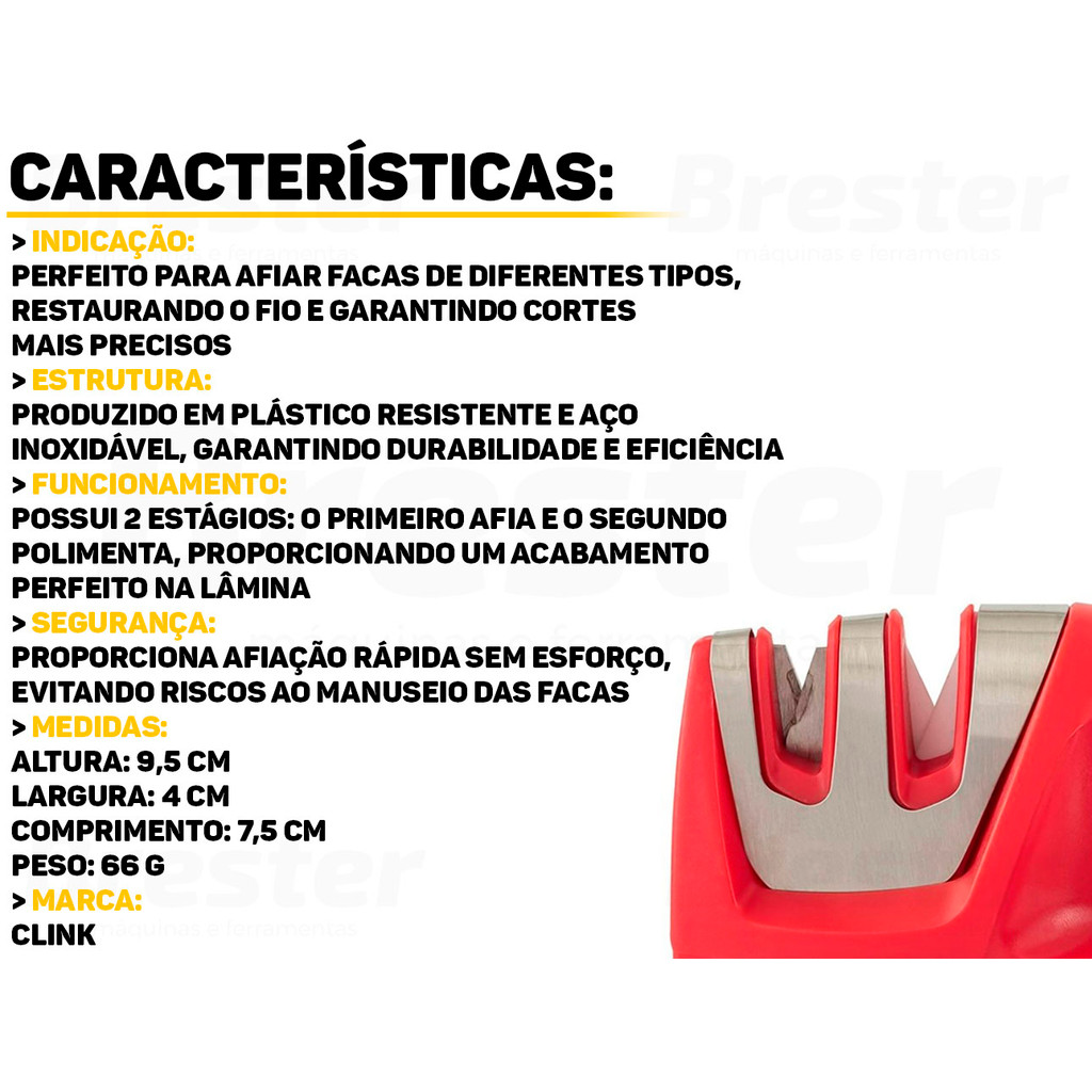 Afiador De Facas E Tesouras Clink Portátil Manual 2 Estágios De Afiação Em Inox P/ Cozinha Profissional