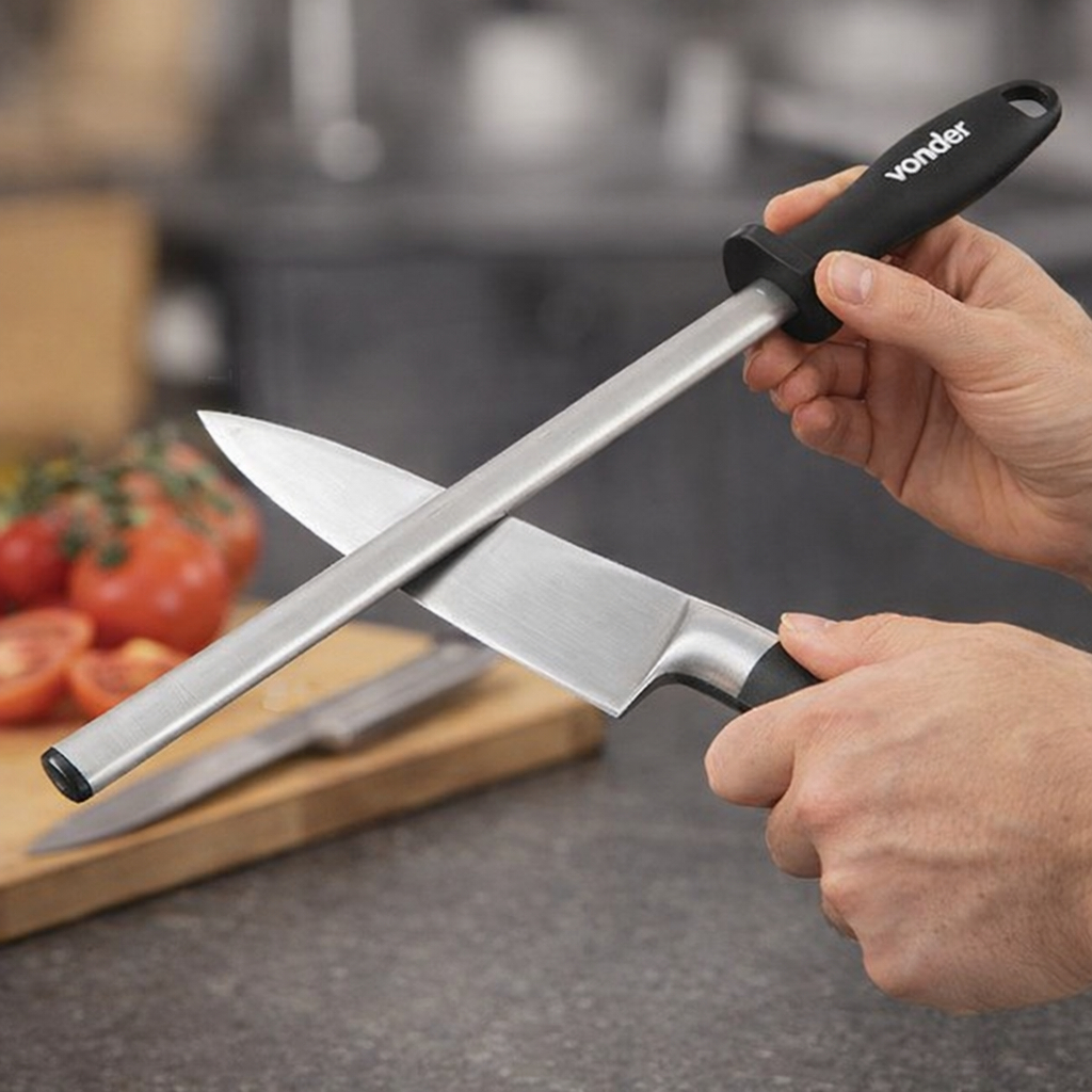 Indicado para afiar facas em geral. A haste possui 30 cm de comprimento e apresenta estrias uniformes, ideais para a manutenção do fio das lâminas. O cabo é confeccionado em plástico de alta qualidade, oferecendo excelente empunhadura e maior segurança durante o manuseio. Conteúdo da Embalagem: 1 Afiador de facas Detalhes Técnicos: - Aplicação: Facas - Material da superfície de afiação: Aço - Material do corpo do afiador: Cabo plástico - Massa aproximada (peso): 0,224 kg