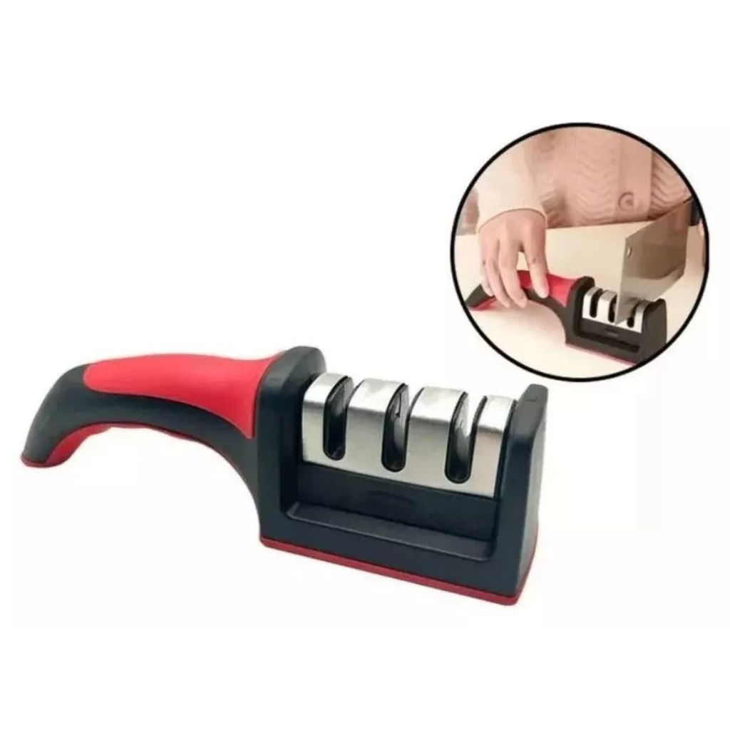 Você sabia que uma faca bem afiada pode tornar o corte de alimentos muito mais fácil e preciso? - Fácil de usar e oferece uma maneira rápida e eficiente de afiar suas facas. - Compacto e fácil de armazenar. - Indicado para afiar facas e tesouras de aço inox; - Afia Simultaneamente os dois lados da Faca; - Não necessita água, nem óleo para afiar; - Este produto não deve ser usado para afiar lâminas serrilhadas; FUNÇÕES: · Afiar; · Amolar; · Acabamento; · Afiar Tesouras. DIMENSÕES: Altura: 5,5cm Largura: 5cm Comprimento: 21cm Obs - Para afiar Tesouras, utilize apenas a Parte Nº4. Verifique a posição ou ângulo da faca antes de Afiar.