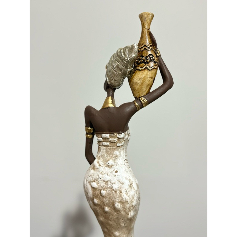 Africana Mulher Com Jarro Ombro Escultura Luxo Decoração Estátua 45cm