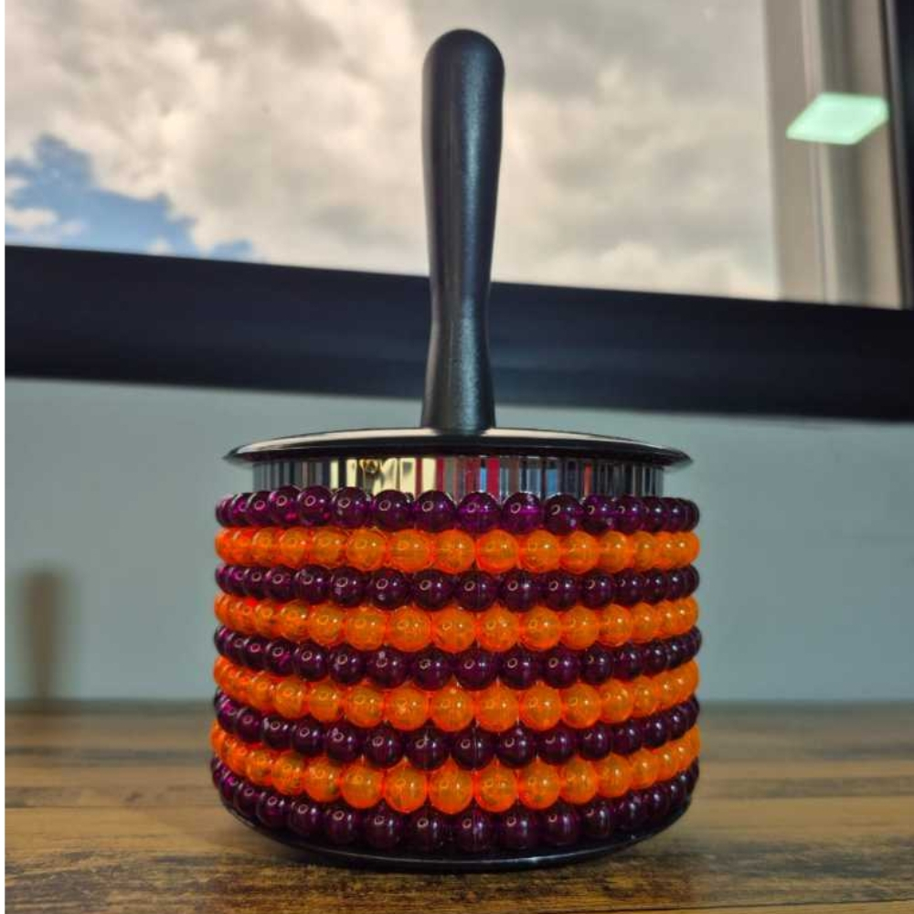 Referente a 01 Afuxé PHX Music 85A Afuxé em cores sortidas, com esferas dispostas em fios de metal (para maior durabilidade) enrolados em torno de um cilindro texturizado para produzir uma variedade de padrões rítmicos ao raspar ou chacoalhar. Cabo e tampos em plástico ABS. Volume sonoro moderado-alto. Características Diâmetro: 14cm Cabo: 12cm Comprimento total (cabo + cilindro): 23cm Peso: 530g Material da alça: plástico ABS Material das tampas: plástico ABS Material das esferas: plástico Material dos cordões: metal Material do cilindro texturizado: metal Cor do corpo: cores sortidas Cor das esferas: cores sortidas Marca: Music Modelo: 85A Obs. Nao acompanha a Capa.