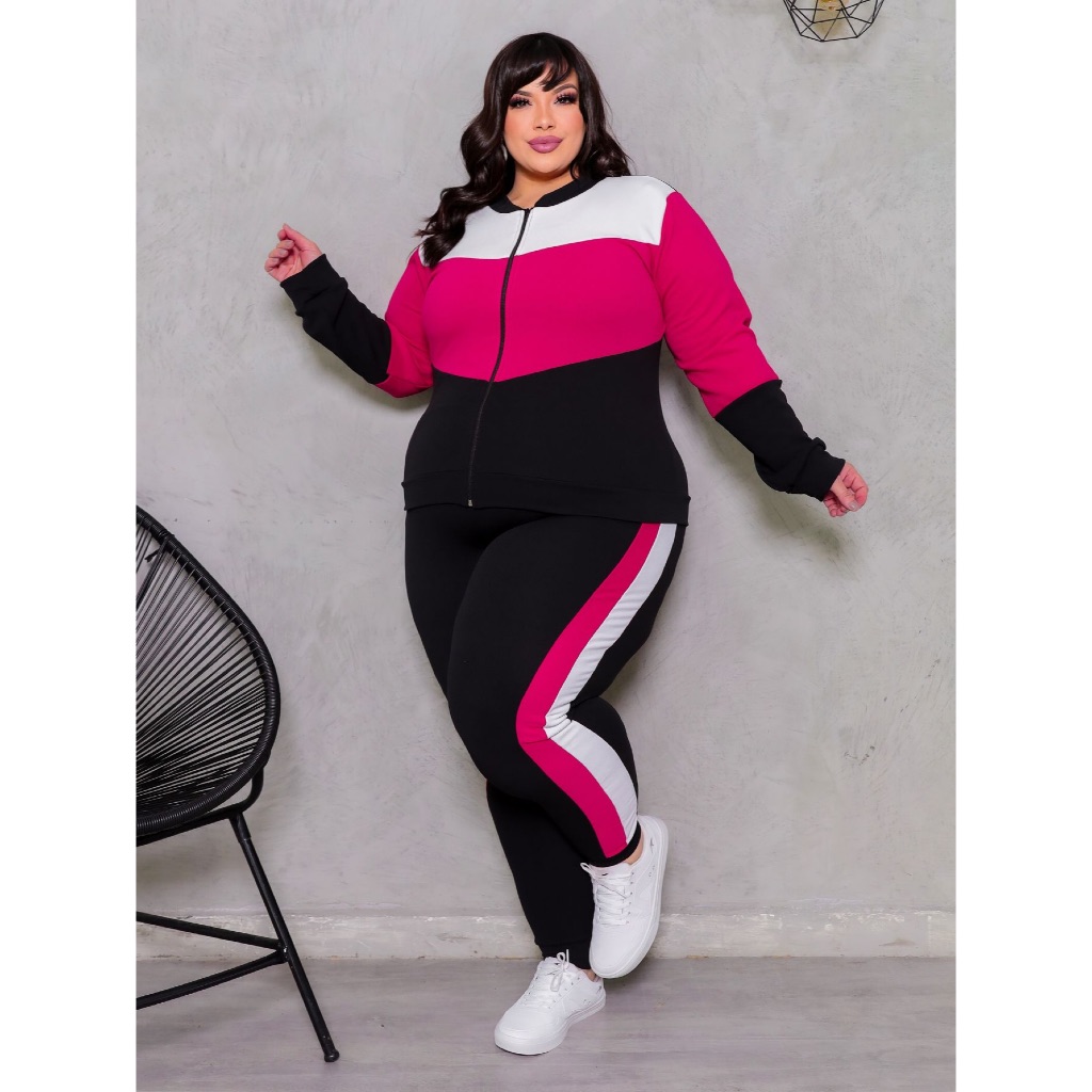 Agasalho Feminino Plus Size Linha Premium Blusa Manga Longa Com Ziper e Calça Jogger Conjunto Feminino Plus Size Moda S