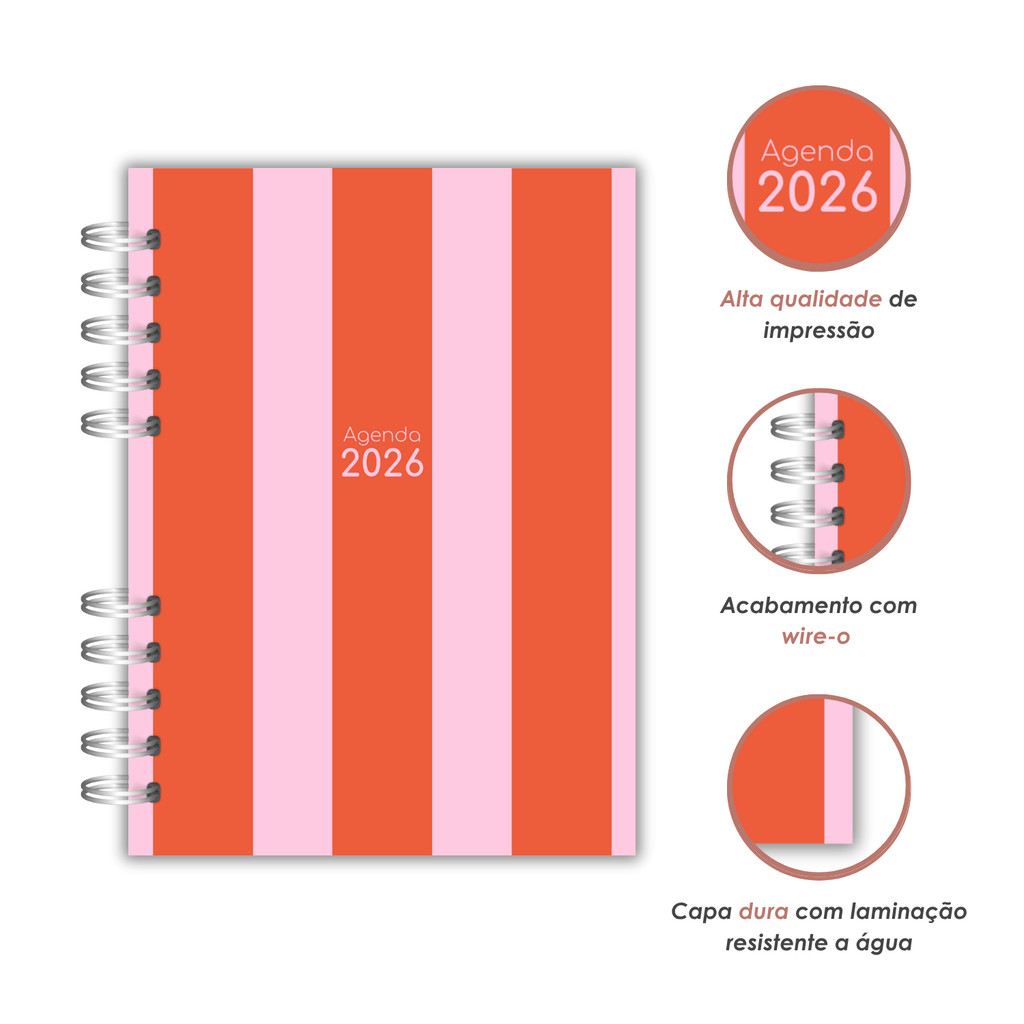 Agenda 2026 Datada A5 Capa Dura Wire-O Elástico com Folhas de 90g