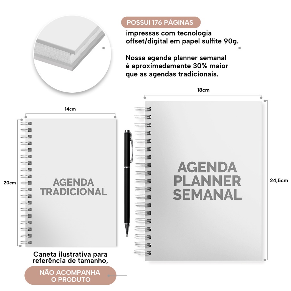 Agenda planner semanal 2026. >>> Esse anúncio/produto não é possível personalizar. >>> Não alteramos cor, fonte ou elementos gráficos da estampa deste anúncio. >>> ESPECIFICAÇÕES DO PRODUTO - Páginas internas (miolo) impressas em papel sulfite (offset) 90g branco no tamanho 18 cm de largura por 24,5 cm de comprimento. - Capa dura com laminação para proteção. - Encadernado com garras duplo anel de metal (WIRE-O). - Quantidade de páginas: 176 páginas. A agenda planner semanal da Iscool é perfeita para uso diário, seja na empresa, escritório, salão, clínica, escola, faculdade ou até mesmo em casa. Com ela, você pode agendar compromissos, eventos, tarefas, lembretes e contatos, tornando sua rotina mais funcional e produtiva. Com o tamanho de 18 x 24,5 cm, ela é 30% maior que os modelos tradicionais, e o grande diferencial dessa linha é a visão completa da semana, com os dias separados em colunas, onde as linhas possuem marcação dos horários divididos de 1 em 1 hora, que vão das 7h às 20h, abrangendo o dia todo. E ainda é possível incluir manualmente horários intermediários, por exemplo: 7h30. Logo no início, você pode preencher todos os seus dados pessoais, profissionais e emergenciais, seguido pela “Minha Página ON”, ideal para registrar suas contas digitais, com seus respectivos logins e senhas, e uma página de “Datas Importantes/Aniversários”, com os 12 meses do ano organizados para você anotar aniversários e datas a serem lembradas. Em seguida, páginas para a ferramenta “Roda da Vida”, objetivos para o ano e organização da rotina. A seguir, há uma visão geral do calendário completo de 2026. Logo depois, temos o planejamento anual para anotar os objetivos e metas de cada semestre. No início de cada mês, há um planejamento mensal, facilitando visualmente as suas principais anotações, um “Habit Tracker” para você desenvolver novos hábitos ou controlar os mais importantes, e ainda um planejamento financeiro, facilitando o controle das suas receitas e despesas. Além disso, cada página possui indicação de feriados, das estações do ano, calendário lunar, indicador do número da semana e frases inspiradoras. Ao final da agenda, há uma página com os principais números de telefone úteis, além de instruções sobre como efetuar ligações, uma agenda de contatos, um balanço financeiro anual, uma página com a ferramenta “Roda da Vida” para você comparar sua evolução pessoal em relação ao início do ano e o termômetro de metas, onde você poderá apurar os resultados de cada mês e fazer uma autoavaliação. A capa é impressa com tecnologia digital/offset de alta definição de imagens, onde as cores são reproduzidas com riqueza e vivacidade. Produzimos agendas, cadernos e produtos de papelaria há mais de 30 anos! Garantimos a qualidade e a excelência do seu produto. >>> INFORMAÇÕES DIVERSAS - Leia com atenção a descrição do produto. - Caso tenha dúvidas relacionadas ao produto, antes da compra faça quantas perguntas achar necessário. - Confira seus dados para entrega do produto (endereço completo, telefone para contato, etc.). Não nos responsabilizamos por endereços e locais de entrega incorretos ou por dados incompletos. - Após a compra, se sentir a necessidade de conversar conosco, nos acione através do chat (mensagens). - Valores sujeitos a alterações sem aviso prévio, garantimos o valor somente após compra realizada.