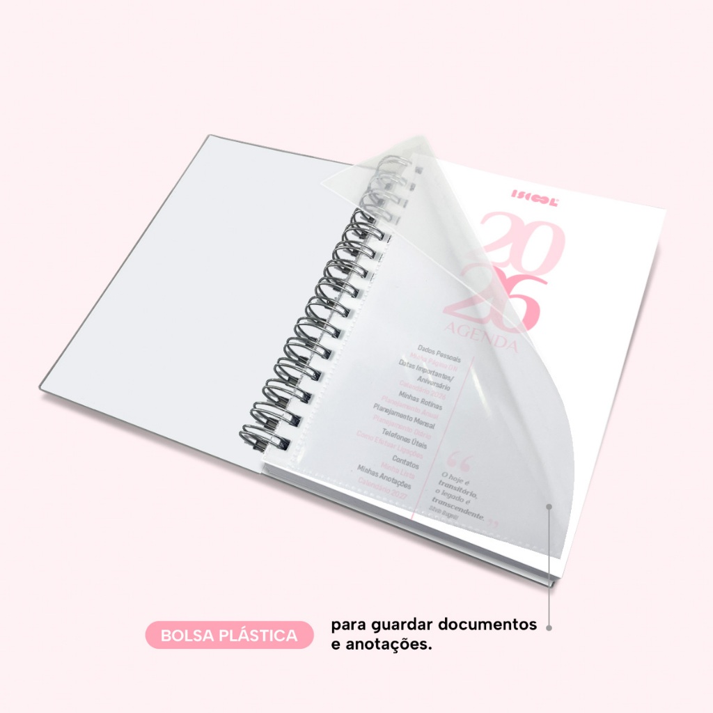Agenda plus 2026 com bolsa plástica e elástico. >>> Esse anúncio/produto não é possível personalizar. >>> Não alteramos cor, fonte ou elementos gráficos da estampa deste anúncio. >>> ESPECIFICAÇÕES DO PRODUTO - Páginas internas (miolo) impressas em papel sulfite (offset) 63g branco no tamanho 14cm de largura por 20cm de comprimento. - Capa dura com laminação para proteção. - Elástico para fechamento da capa da agenda. - Bolsa plástica para guardar documentos e anotações. - Encadernado com garras duplo anel de metal (WIRE-O). - Quantidade de páginas: 352 páginas. A agenda plus da Iscool é perfeita para uso diário, seja na empresa, escritório, salão, clínica, escola, faculdade ou até mesmo em casa. Com ela, você pode agendar compromissos, eventos, tarefas, lembretes e contatos, tornando sua rotina mais funcional e produtiva. Os dias da semana, de segunda-feira a sexta-feira, ocupam páginas inteiras, onde as linhas possuem marcação dos horários divididos de 1 em 1 hora, que vão das 7h às 20h, abrangendo o dia todo. Você também tem a flexibilidade de inserir manualmente horários intermediários, como 7h30. Já nos finais de semana, sábados e domingos compartilham a mesma página, com um espaço maior para o sábado. Logo no início, você pode preencher todos os seus dados pessoais, comerciais e emergenciais, seguido pela “Minha Página ON”, ideal para registrar suas contas digitais, com seus respectivos logins e senhas, e uma página de “Datas Importantes/Aniversários”, com os 12 meses do ano organizados para você anotar aniversários e datas a serem lembradas. Em seguida, há uma visão geral do calendário completo de 2026, seguido de um planejamento anual para registrar seus objetivos e metas para cada semestre. A cada mês, você pode contar com uma página de planejamento mensal, facilitando a visualização de suas principais anotações. Além disso, cada página possui indicações de feriados, estações do ano, calendário lunar, número da semana, frases inspiradoras e um calendário linear do mês no rodapé. Ao final da agenda, há uma página com os principais números de telefone úteis, além de instruções sobre como efetuar ligações, uma seção dedicada a contatos, uma página em formato “bullet list” para itens de lista, páginas para anotações livres e um mapa do Brasil. A capa é impressa com tecnologia digital/offset de alta definição de imagens, garantindo cores reproduzidas com riqueza e vivacidade. Há mais de 30 anos, produzimos agendas, cadernos e produtos de papelaria, garantindo qualidade e excelência. >>> INFORMAÇÕES DIVERSAS - Leia com atenção a descrição do produto. - Caso tenha dúvidas relacionadas ao produto, antes da compra faça quantas perguntas achar necessário. - Confira seus dados para entrega do produto (endereço completo, telefone para contato, etc.). Não nos responsabilizamos por endereços e locais de entrega incorretos ou por dados incompletos. - Após a compra, se sentir a necessidade de conversar conosco, nos acione através do chat (mensagens). - Valores sujeitos a alterações sem aviso prévio, garantimos o valor somente após compra realizada.