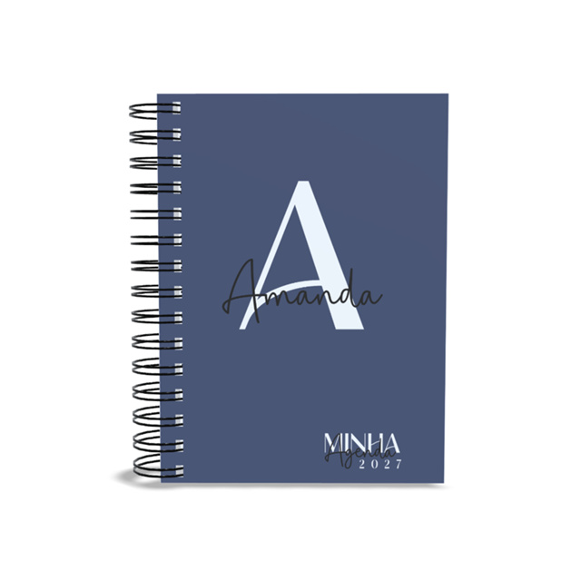 Agenda 2027 **** PRECISA INFORMA O NOME LOGO APÓS A COMPRA PELO CHAT**** ATENÇÃO: Caso não seja informado o nome será enviado um modelo padrão no lugar do nome será agenda ano 2027. Modelo Padrão sendo sábado e domingo na mesma página. Modelo 1 dia por pagina sendo 1 pagina para cada dia. *CARACTERÍSTICAS E ESPECIFICAÇÕES* - Pagina de Abertura - Pagina de Dados Pessoais - Pagina Calendário 2026, 2027 - Pagina de Planejamento 2027 - Pagina de Controle Financeiro 2027 - Pagina de Senhas e Acessos - Pagina de Contatos - Pagina de Contatos de aniversários - Pagina de Telefones de Emergências Públicos - Pagina Mapa do Brasil - Pagina de Anotações diversas - Paginas Dia de Semana - Pagina Sábado e Domingo Miolo da Agenda 2027 * Quantidade páginas:* 346 * Impressão: PB: Tinta pigmentada Aprova D'água Resistente ao Tempo * Composição: 1 página por dia, exceto sábado e domingo. * Papel Offset:* 75 gramas * Tamanho:* A5 14,0x21cm * Papelão da Capa:* Holler 1,9mm. * Papel Fotográfico:* Brilhante 135g. * Laminação Bopp:* Brilhante ou Fosca (Fosca informar na hora da compra) * Encadernação Espiral Duplo (Wire-o):* Cor: Preta * Envelope Plástico para papeis e outros.
