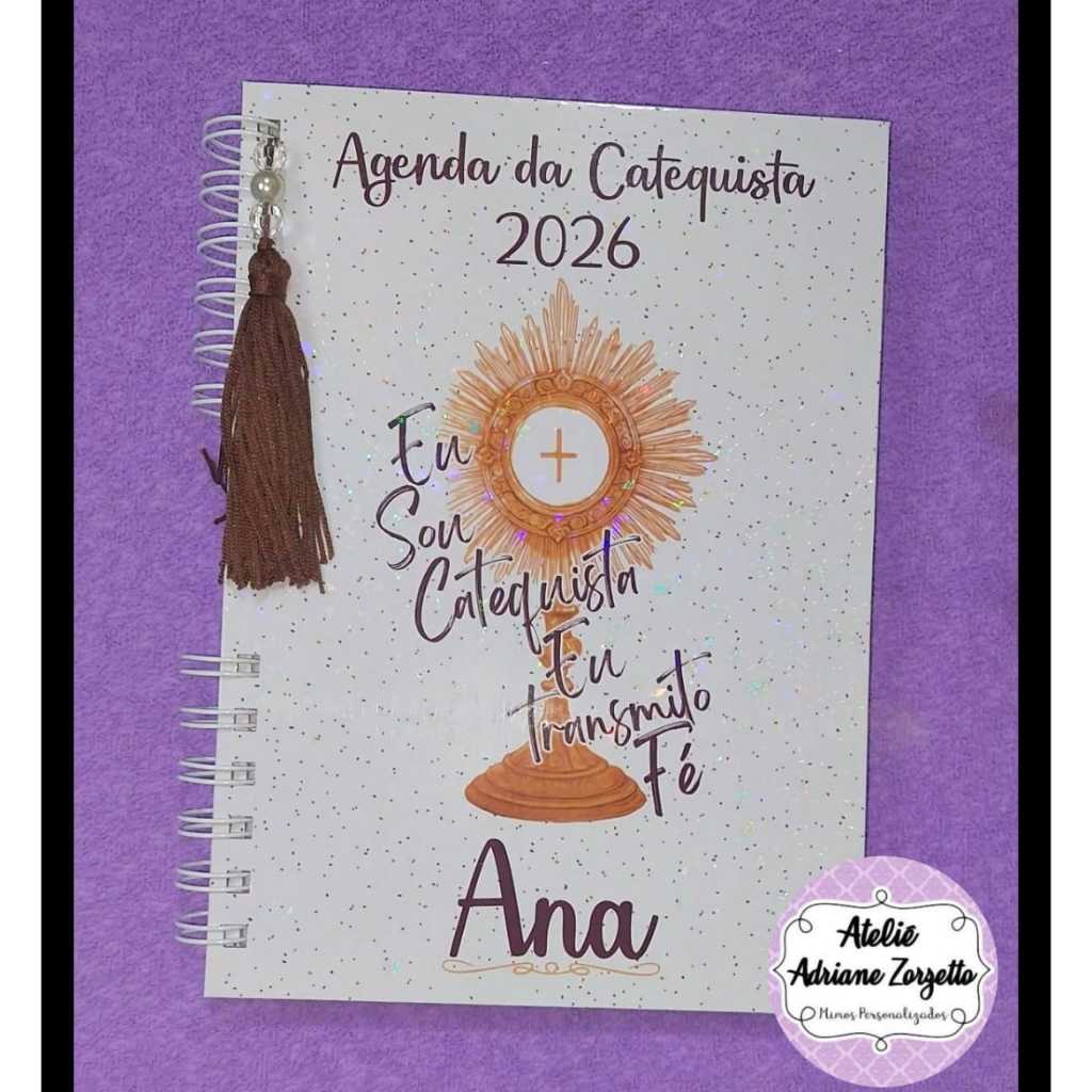 ✨ AGENDA DA CATEQUISTA 2026 – ORGANIZAÇÃO, FÉ E MISSÃO CAMINHANDO JUNTAS A Agenda da(o) Catequista 2026 foi criada para acompanhar pessoas chamadas por Deus a evangelizar, ensinar e cuidar da fé das crianças, jovens e famílias. Mais do que uma agenda, ela é uma ferramenta de apoio espiritual e organizacional para viver a catequese com mais tranquilidade, amor e propósito. Cada página foi pensada para facilitar o planejamento dos encontros, o acompanhamento dos catequizandos e o registro da sua caminhada na missão. 🙏 Uma agenda feita para quem catequiza com o coração. 📖 CONTEÚDO DA AGENDA ✔ Folha de abertura ✔ Carta ao catequista ✔ Calendário 2026 ✔ Cadastro de catequizandos ✔ Calendário de eventos ✔ Controle de aniversariantes ✔ Encontros de formação ✔ Reuniões com pais e responsáveis ✔ Lista de presença 📅 ORGANIZAÇÃO MENSAL E CATEQUÉTICA ✨ Abertura de cada mês com: ✔ História de um santo ✔ Devoção da Igreja 📘 Preparando o encontro: ✔ Espaço para liturgia dominical ✔ Planejamento do encontro ✔ Anotações ✔ Organização dos temas Tudo estruturado para que você chegue em cada encontro segura, preparada e em oração. 💎 BENEFÍCIOS QUE CONECTAM COM A MISSÃO ✔ Mais organização na catequese ✔ Facilidade no acompanhamento dos catequizandos ✔ Planejamento claro dos encontros ✔ Apoio para formações e reuniões ✔ Fortalecimento da vivência espiritual ✔ Registro da caminhada catequética 🎁 IDEAL PARA: 🙏 Catequistas ⛪ Paróquias 📚 Coordenação de catequese 🎁 Presente para catequistas 📖 Uso pessoal ou pastoral *PERSONALIZAVEL COM NOME, MANDAR NO ATO DA COMPRA POR MENSAGEM OU CHAT.