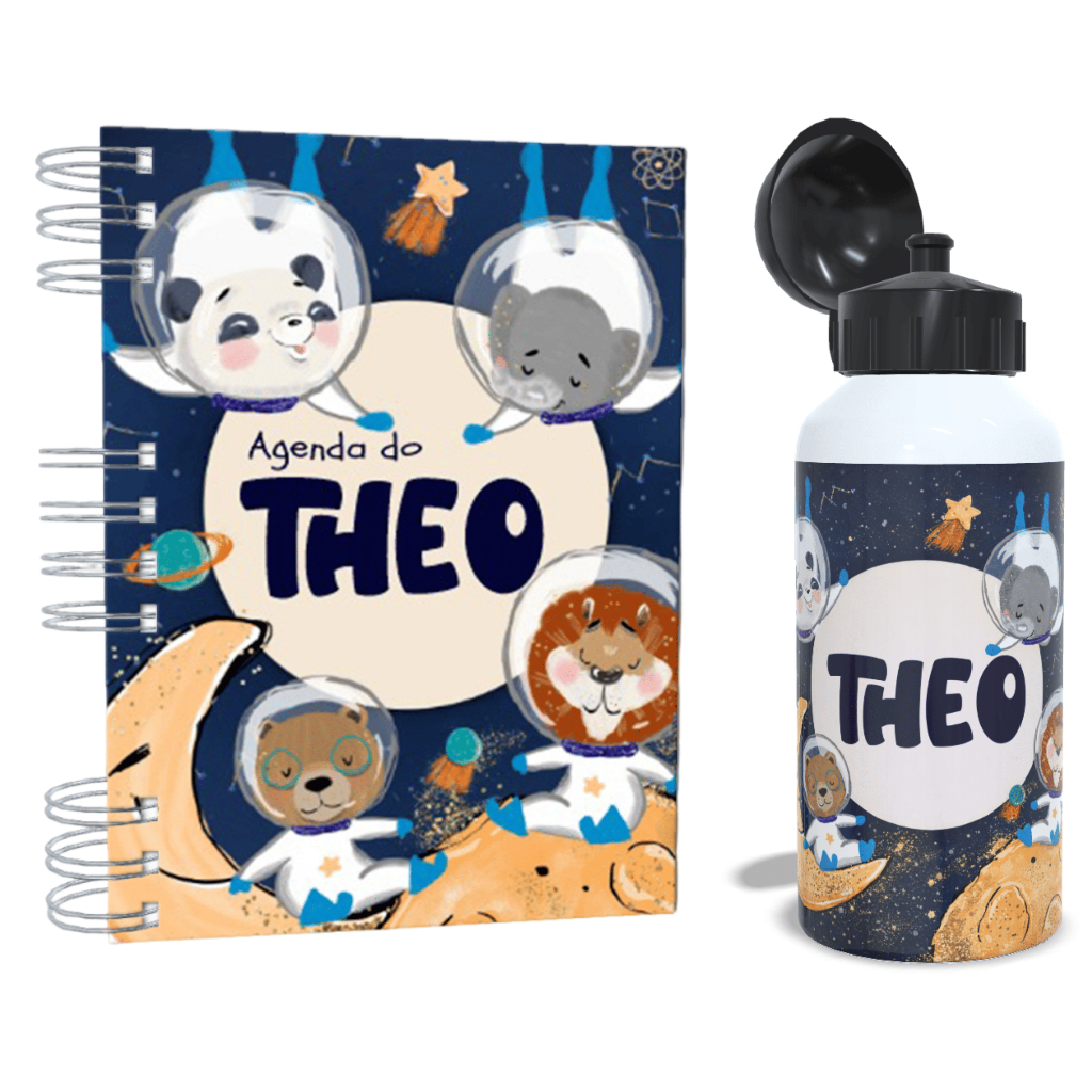 Agenda Escolar + Garrafa - Personalizada - Caderno Permanente - Kit - Personalize com Nome
